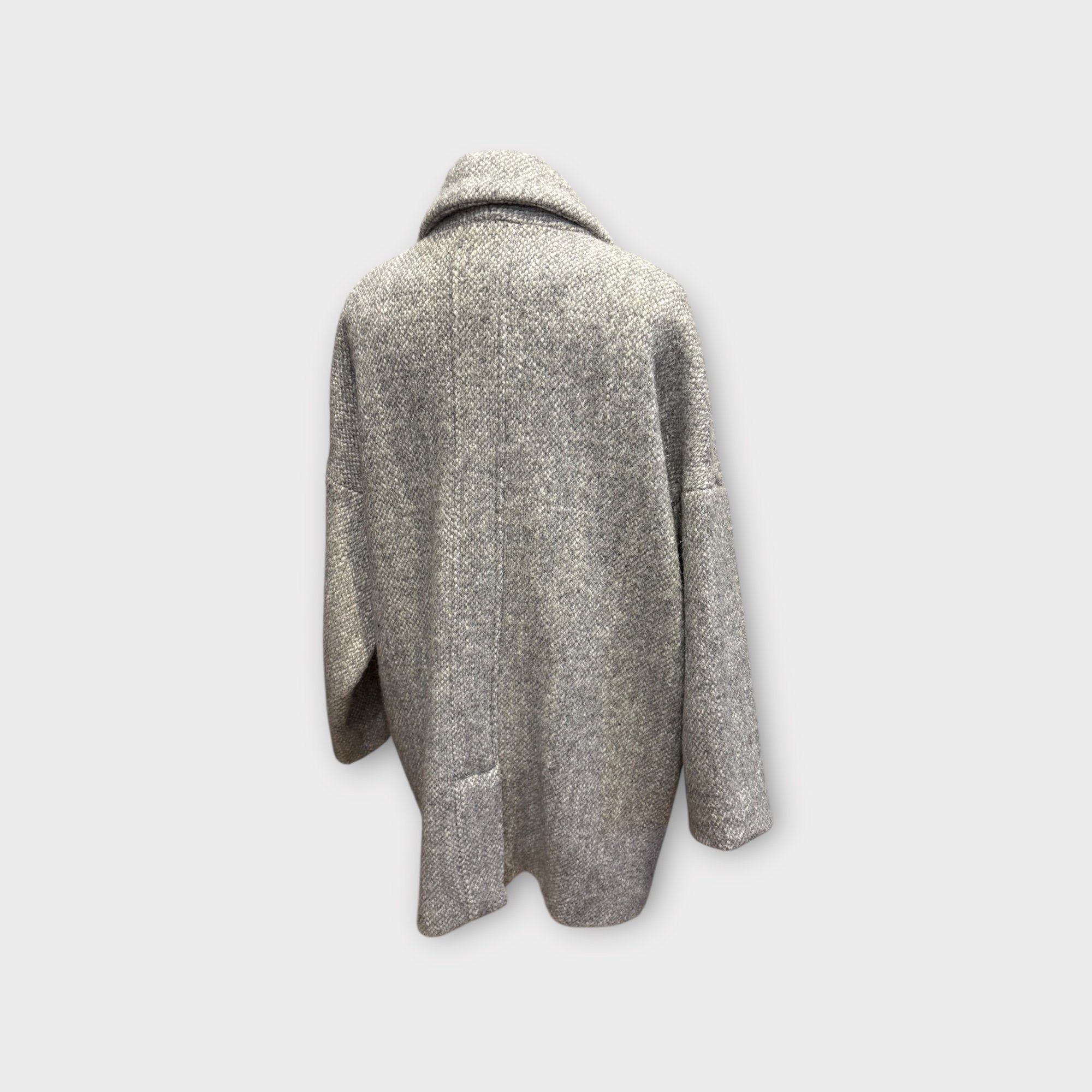 Manteau ¾ en laine majoritaire coloris gris ecru chiné