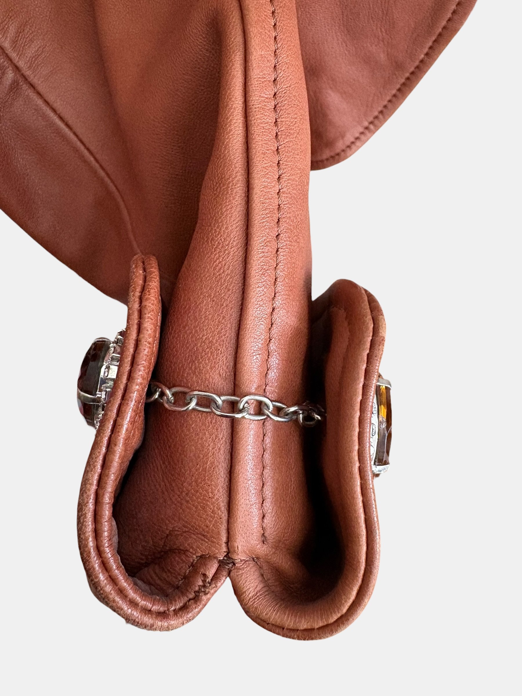 Large poignets mousquetaire terminés par 1 bouton bijoux et strass chainette amovible