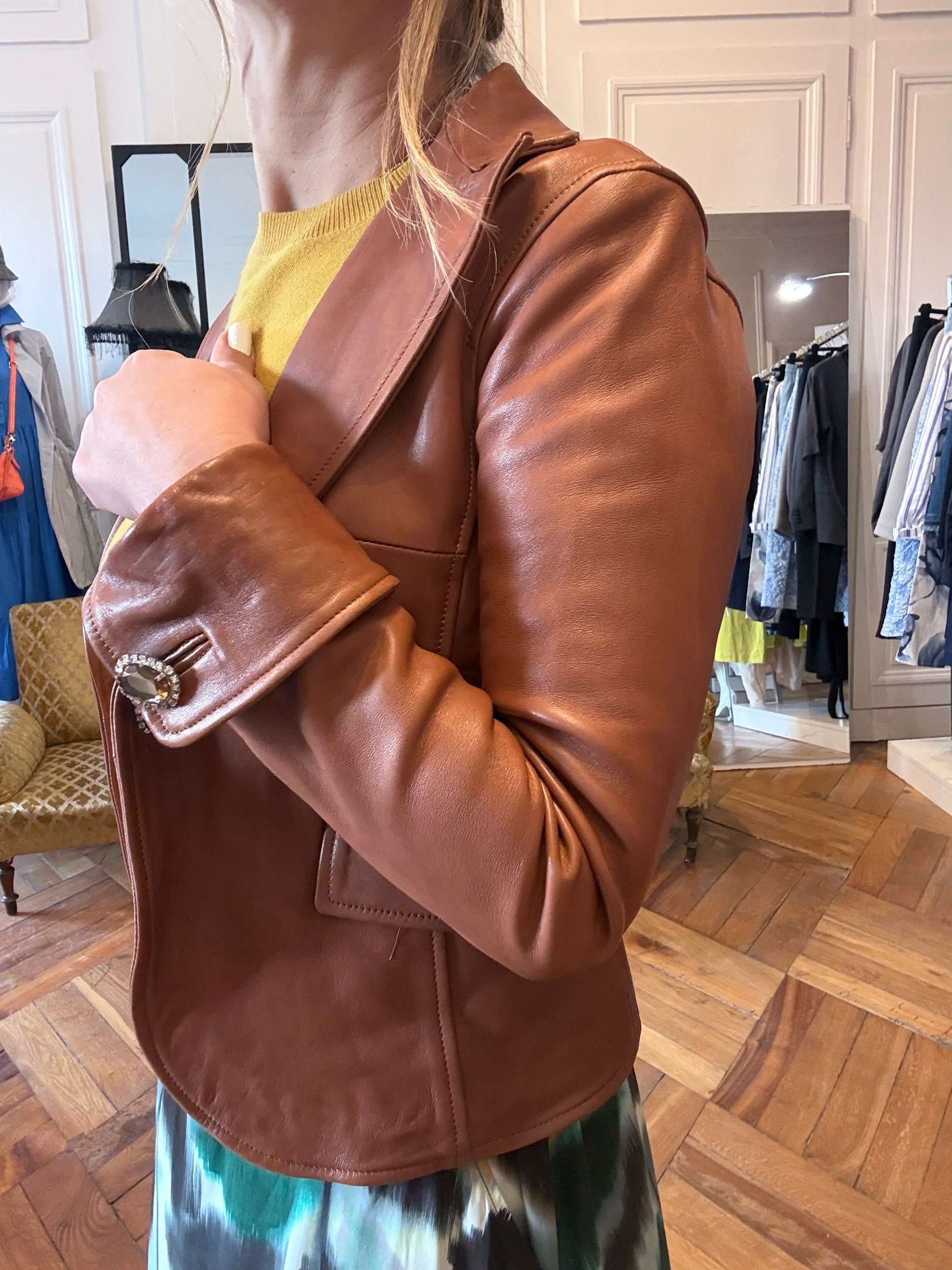 Veste en cuir caramel