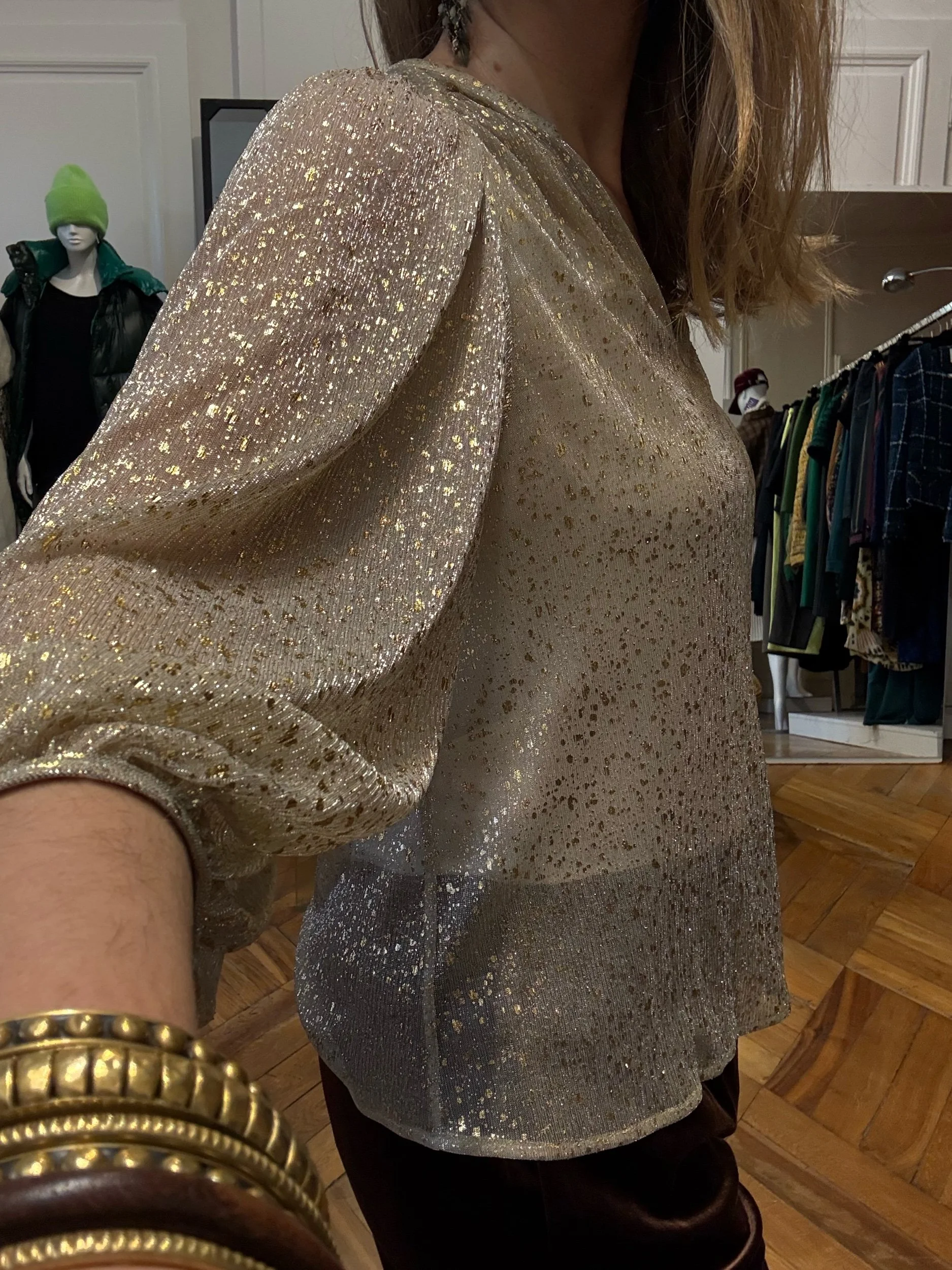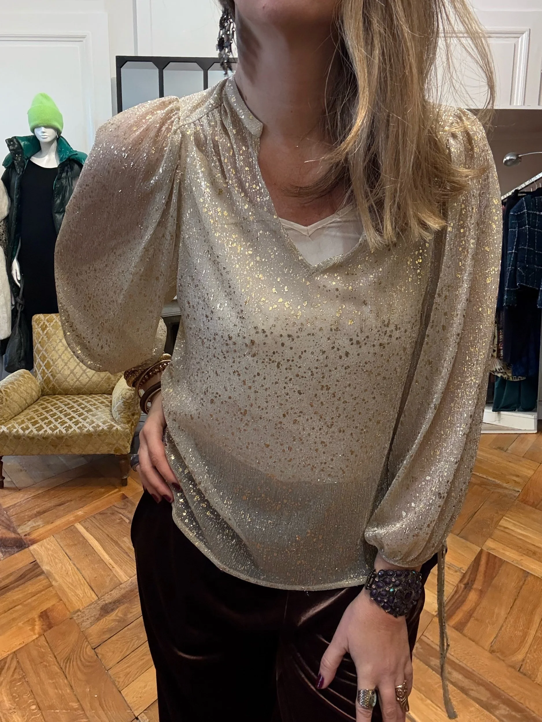 Le + selon ADM: La blouse en voile doré by Bash à porter pour toutes les occasions