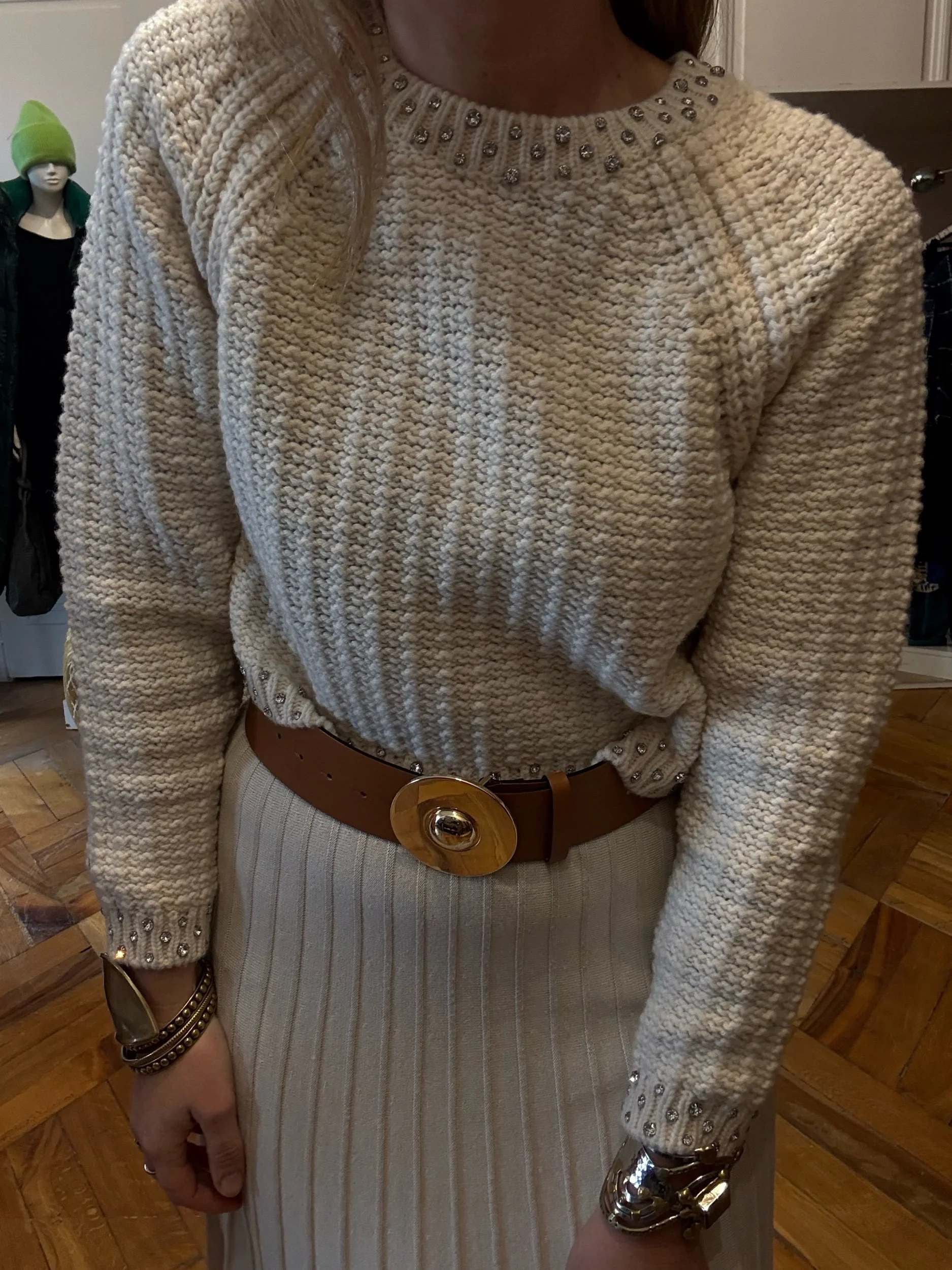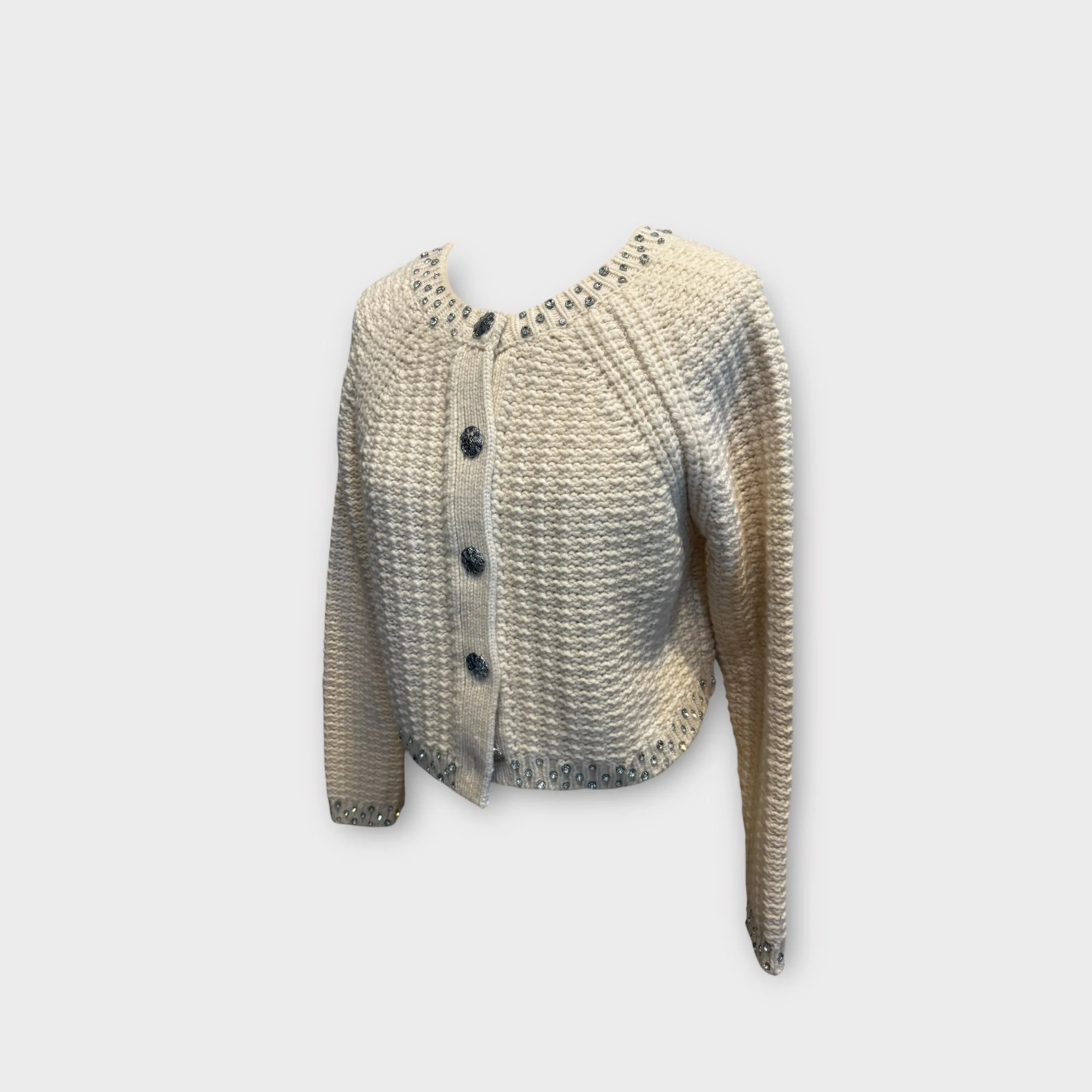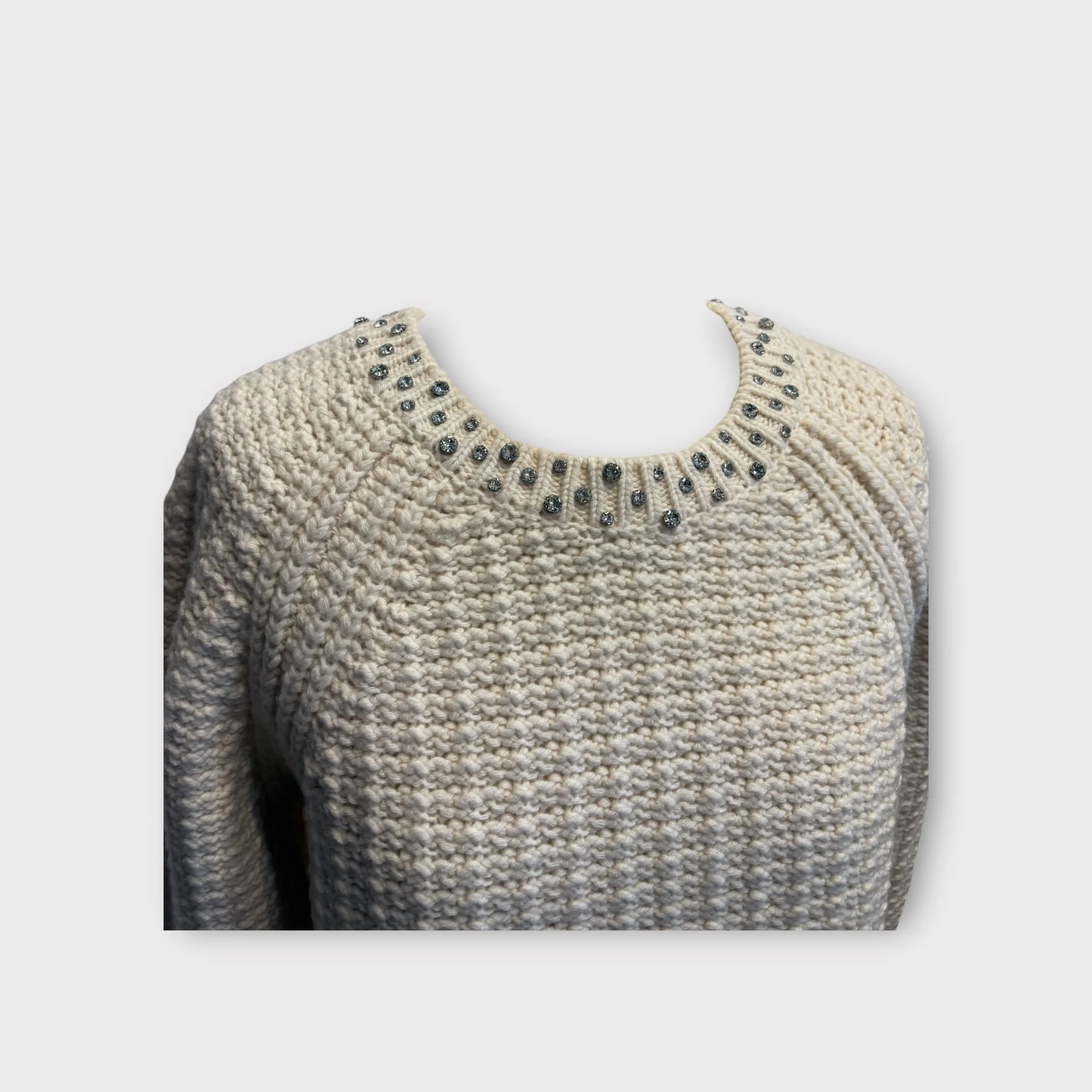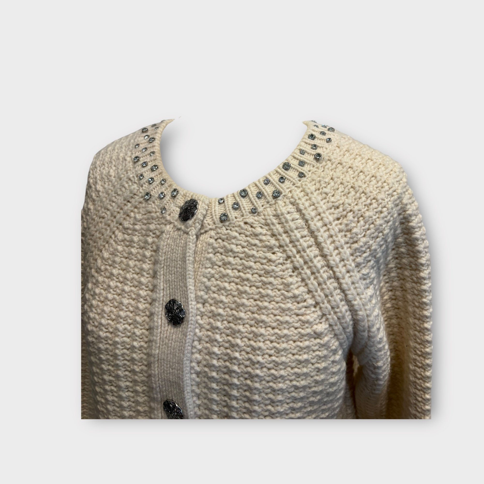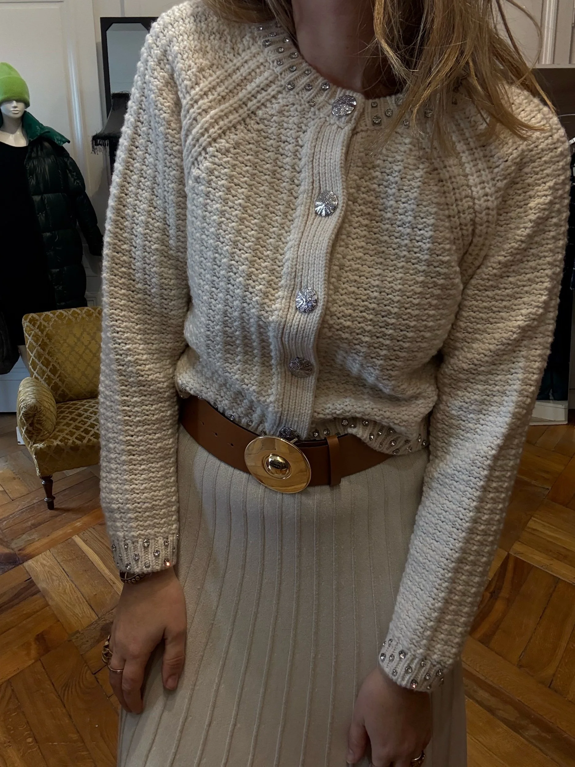 Le + selon ADM: Le pull, gilet ecru strassé en laine toute douce