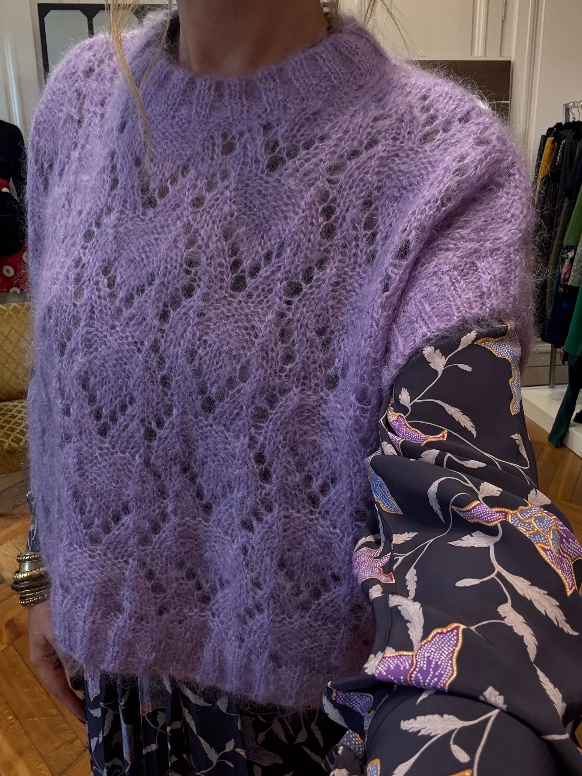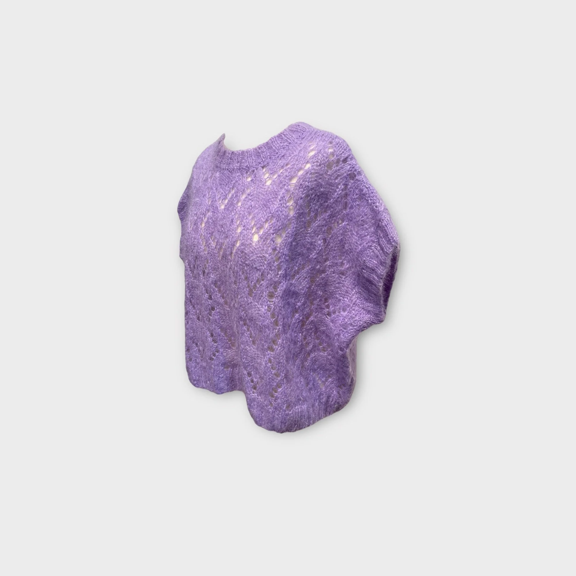 Maille ajourée et duveteuse en mohair majoritaire