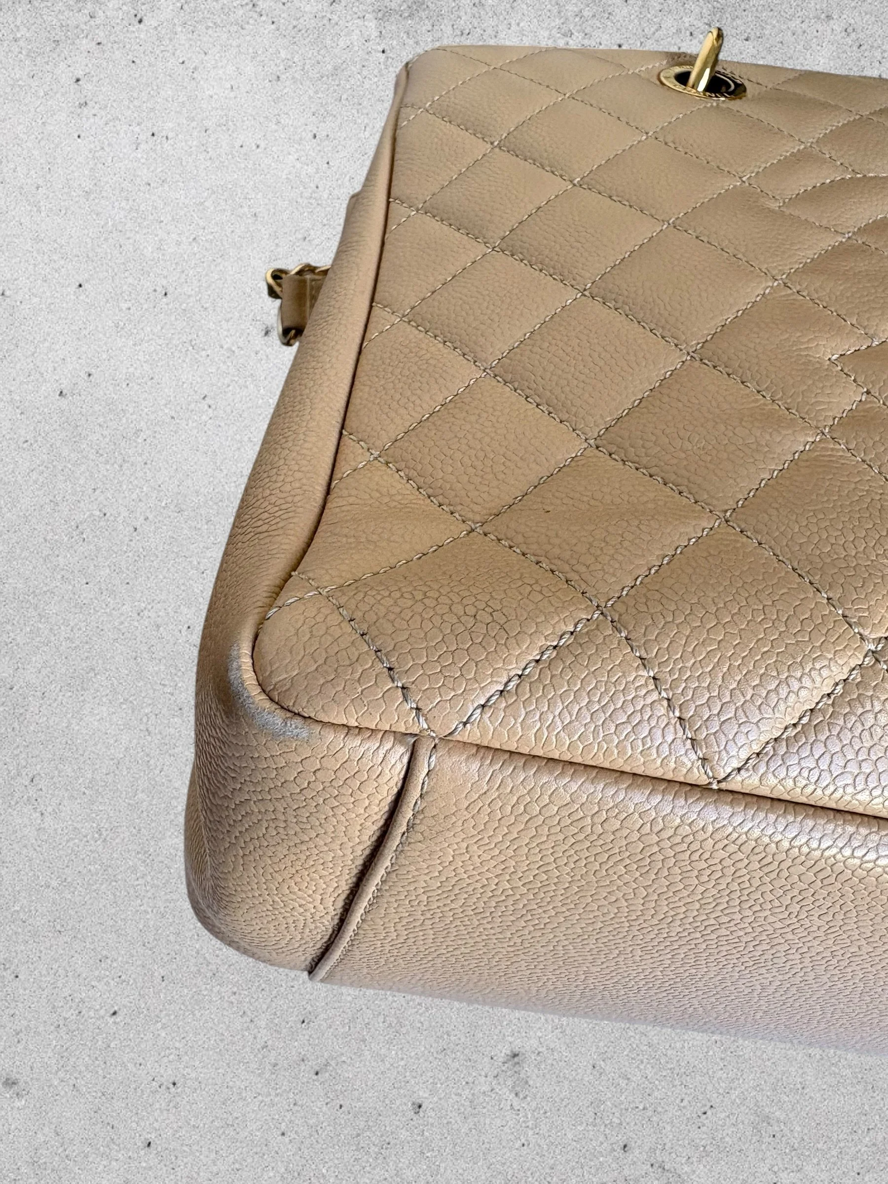 Sac TOTE MATELASSE en cuir caviar coloris vanille
