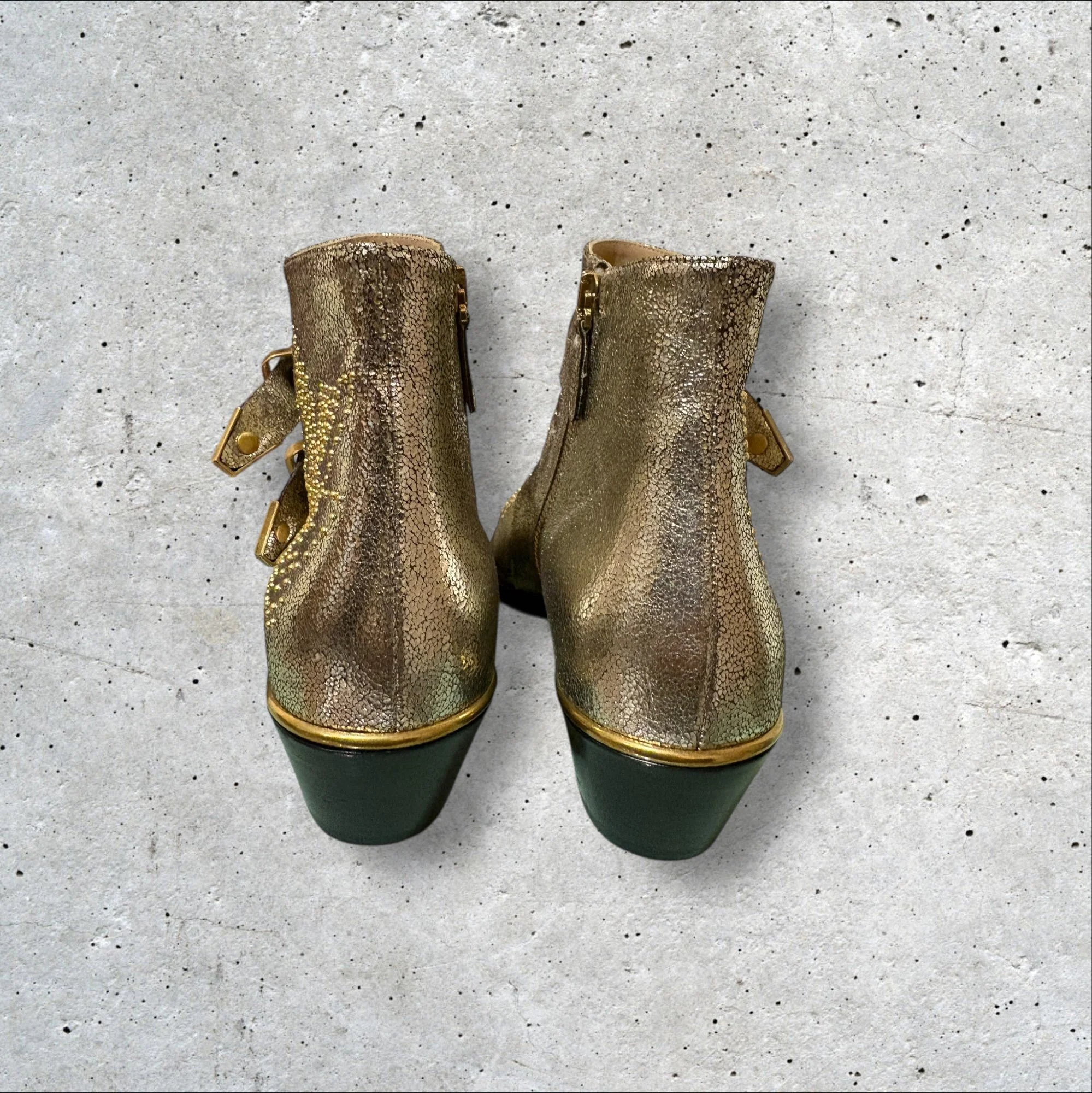 Boots SUSANNA en cuir gold craquelé et rehaussé de clous dorés
