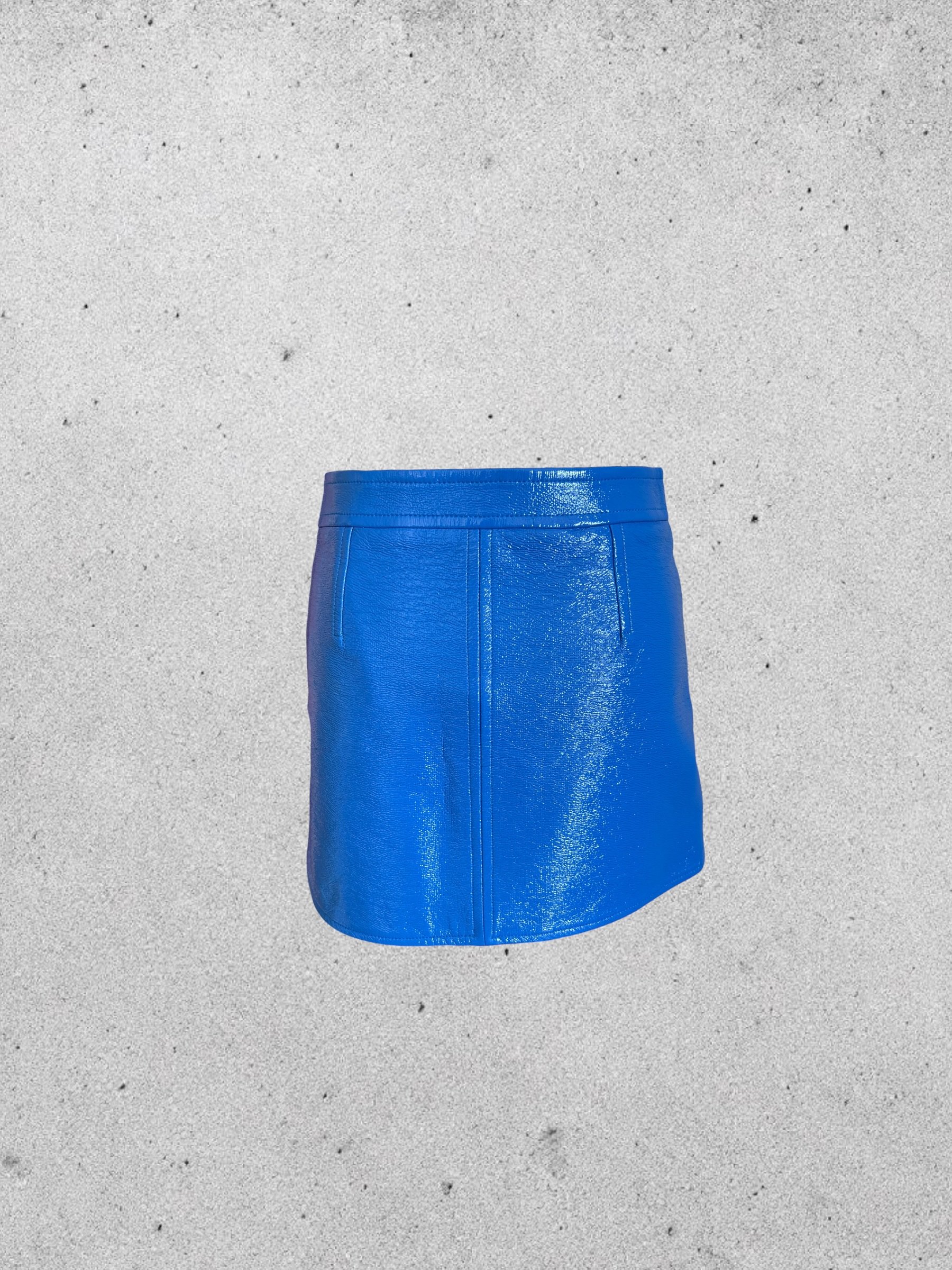 Jupe courte REEDITION VINYL coloris bleu électrique