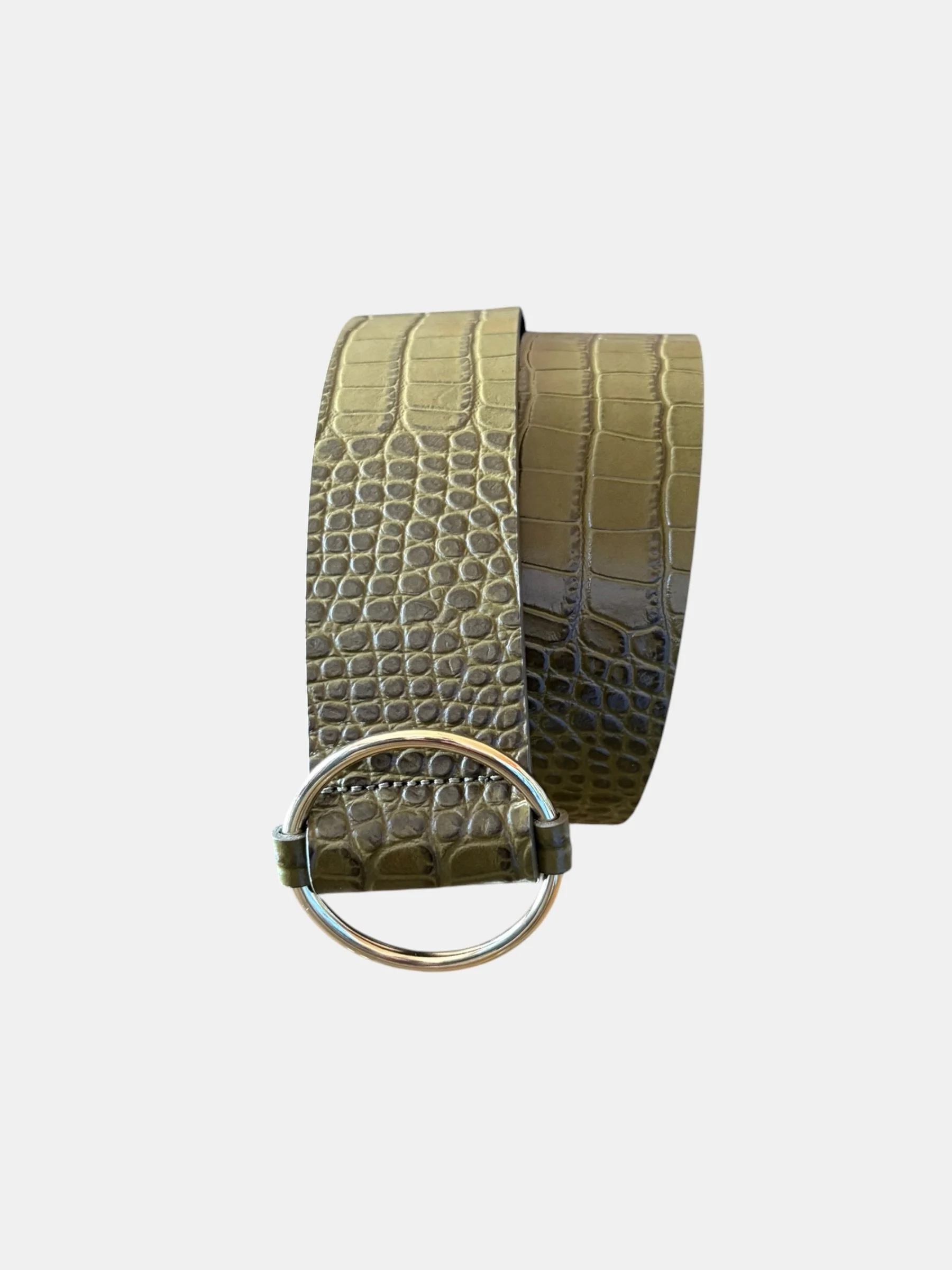 Ceinture en croute de cuir kaki embossé croco
