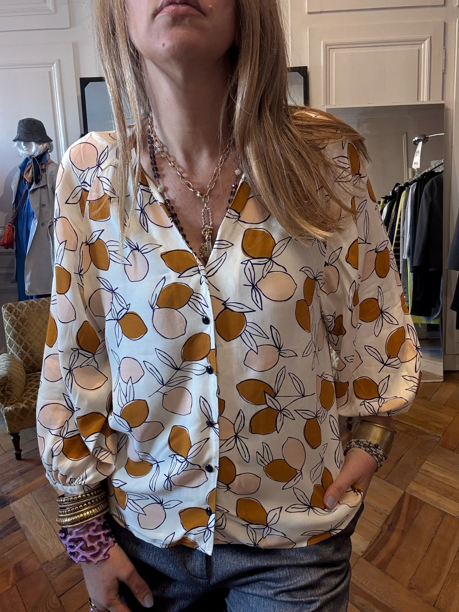 Chemise en viscose imprimé agrumes ocre et nude