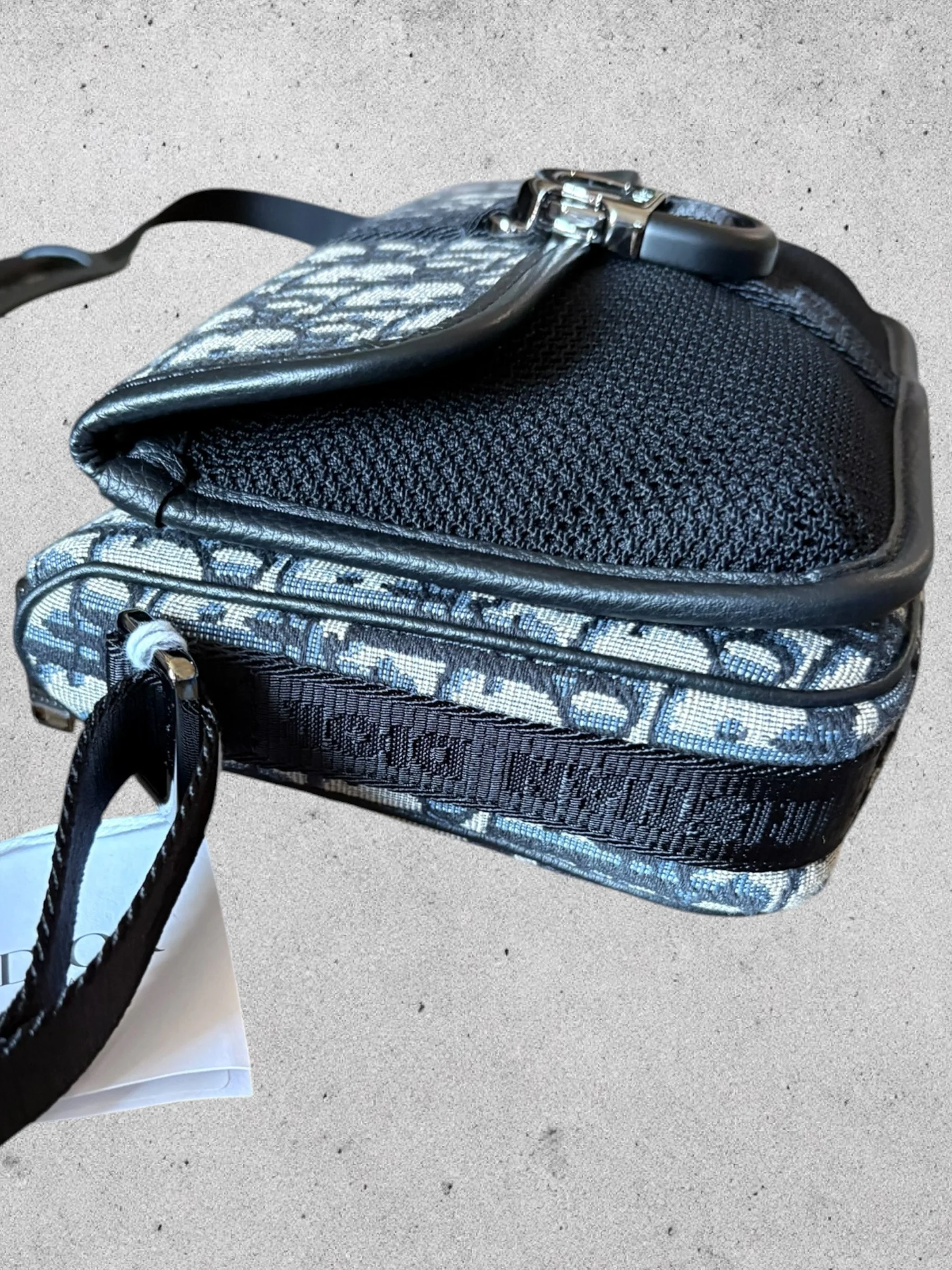 Sac Pochette LIGNE 8 en toile oblique DIOR et tissu technique esprit résille noire
