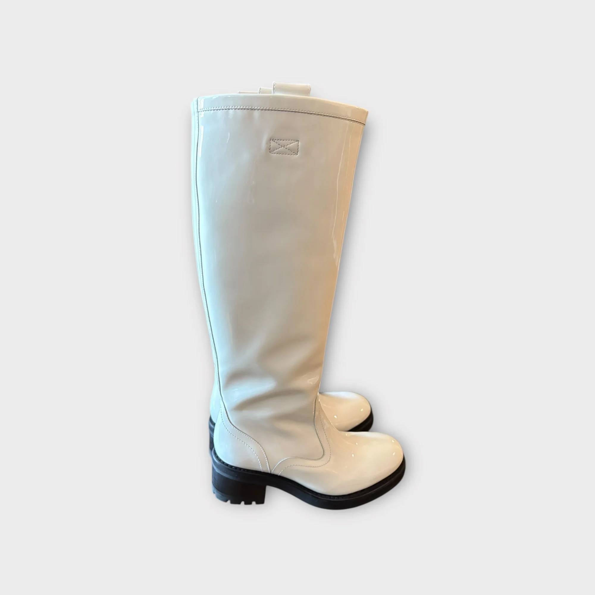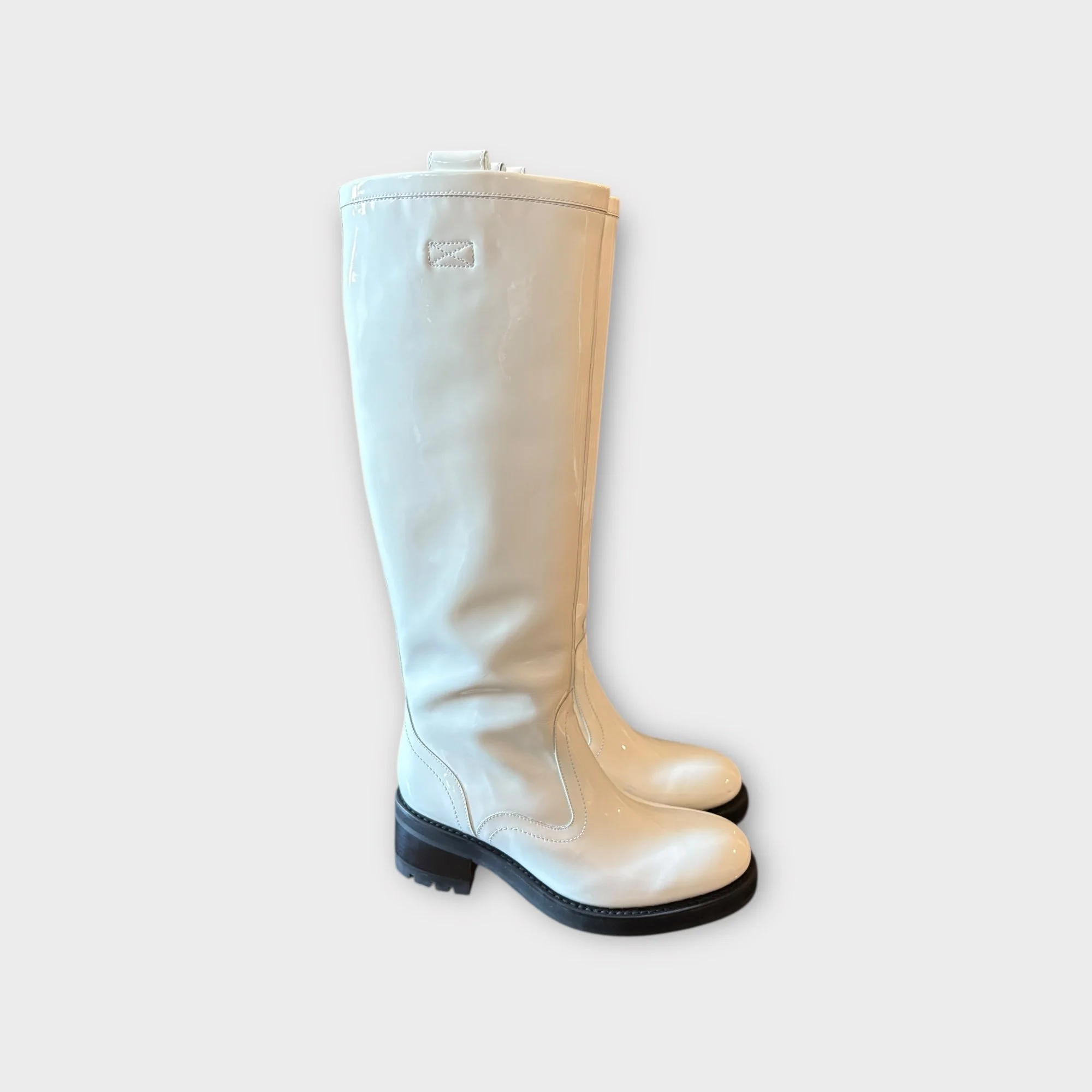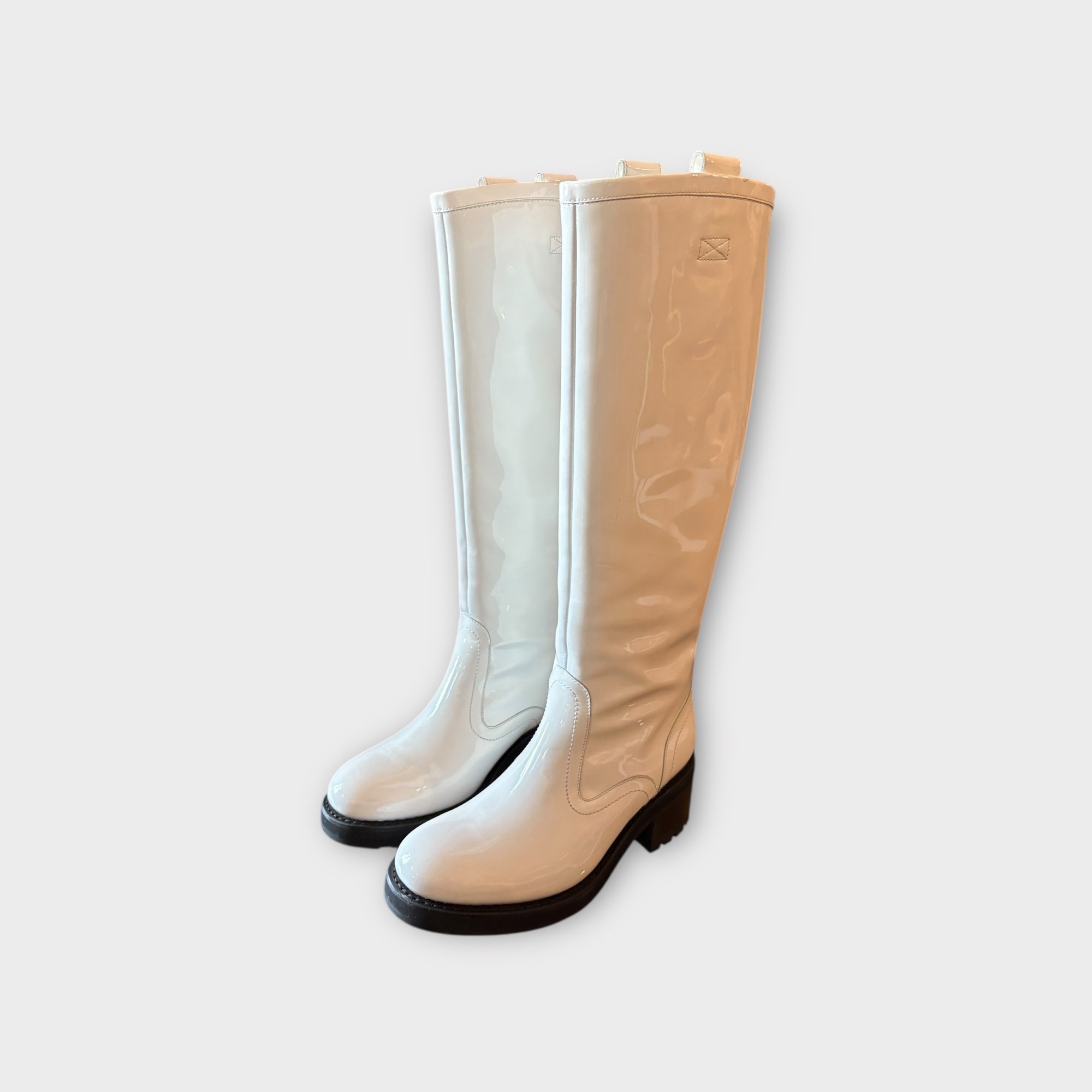 Bottes en cuir vernis blanc