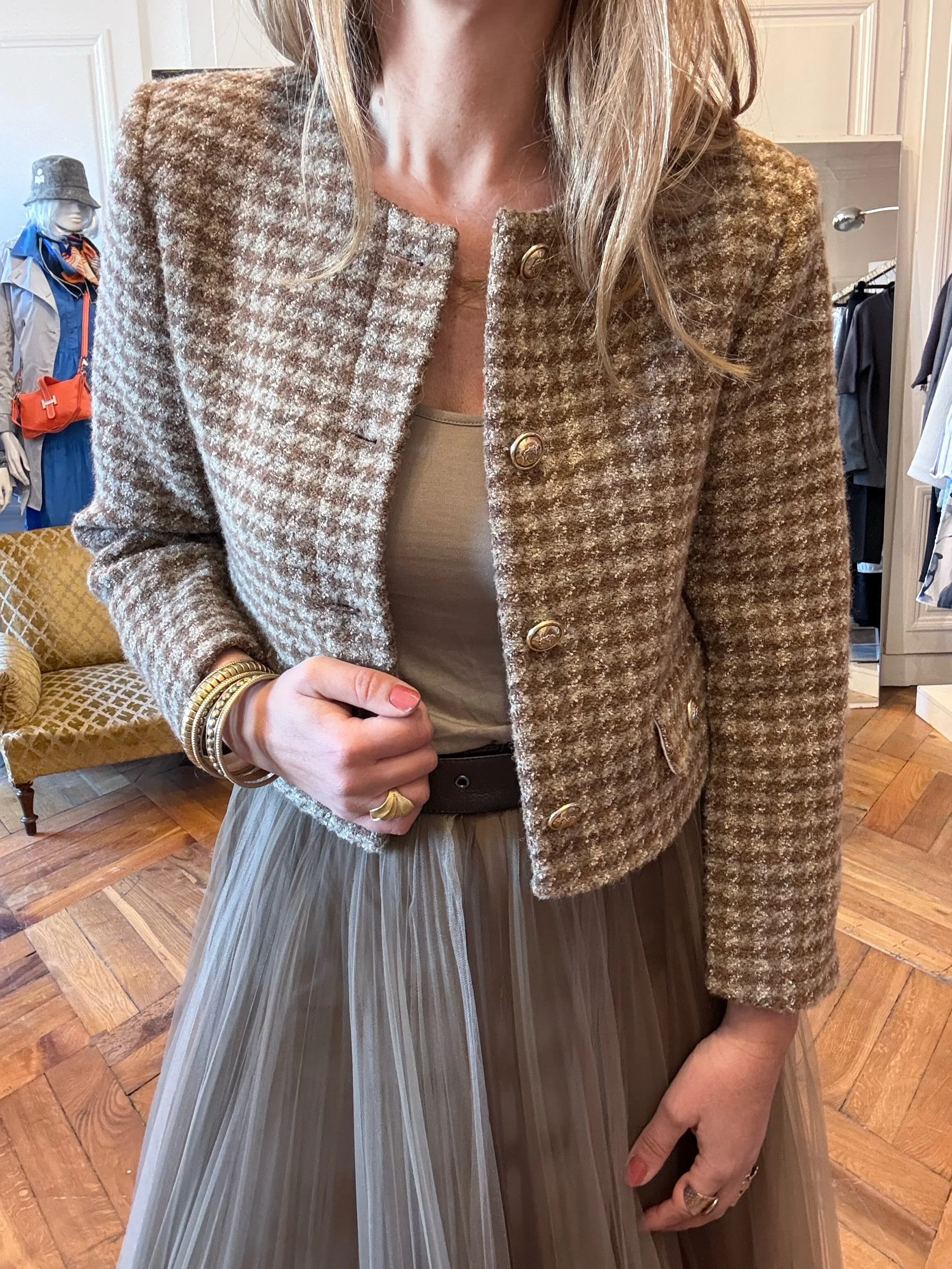 Porté épaule par la bandoulière en cuir 100cm de long