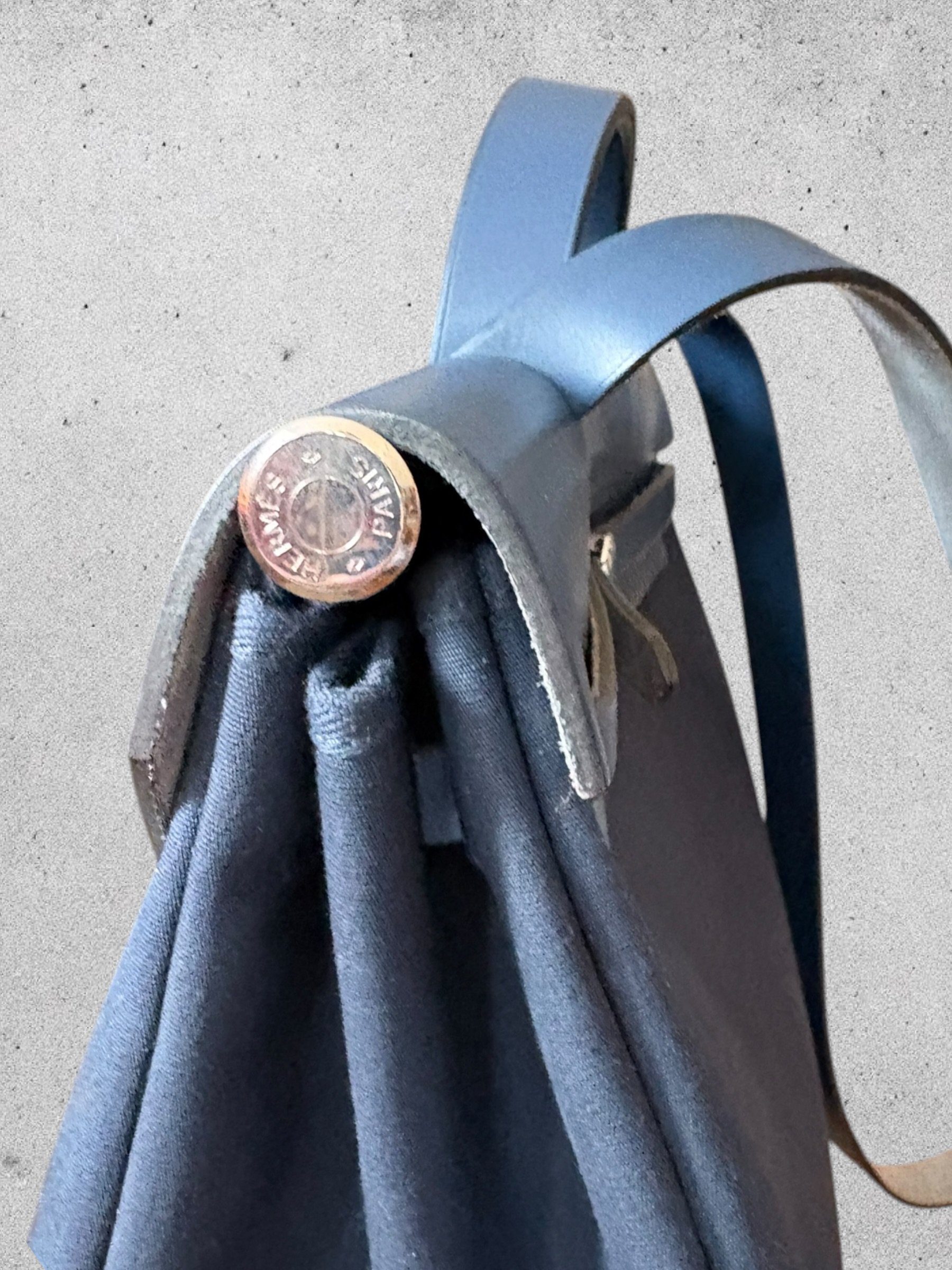 Fermeture du sac par lien de cuir à glisser dans bijou HERMES