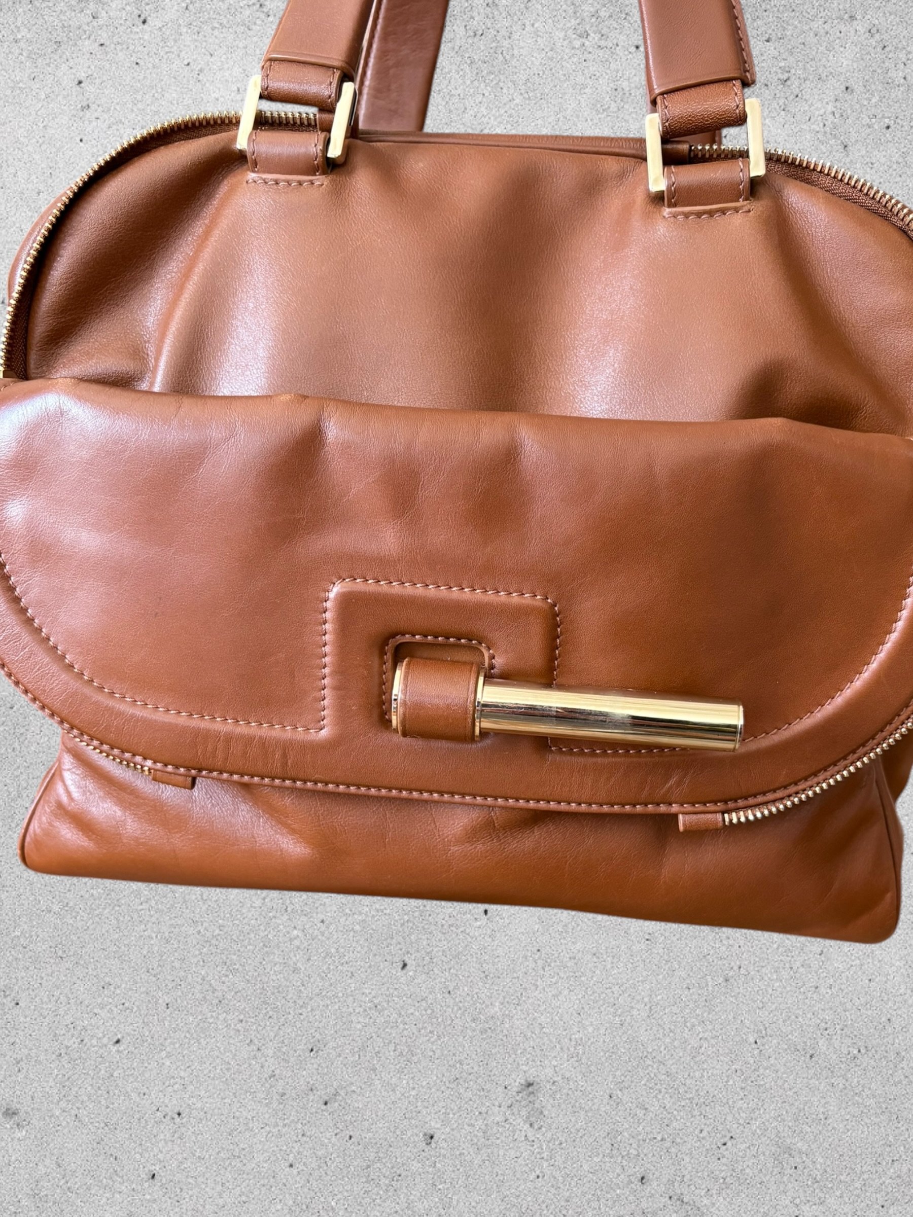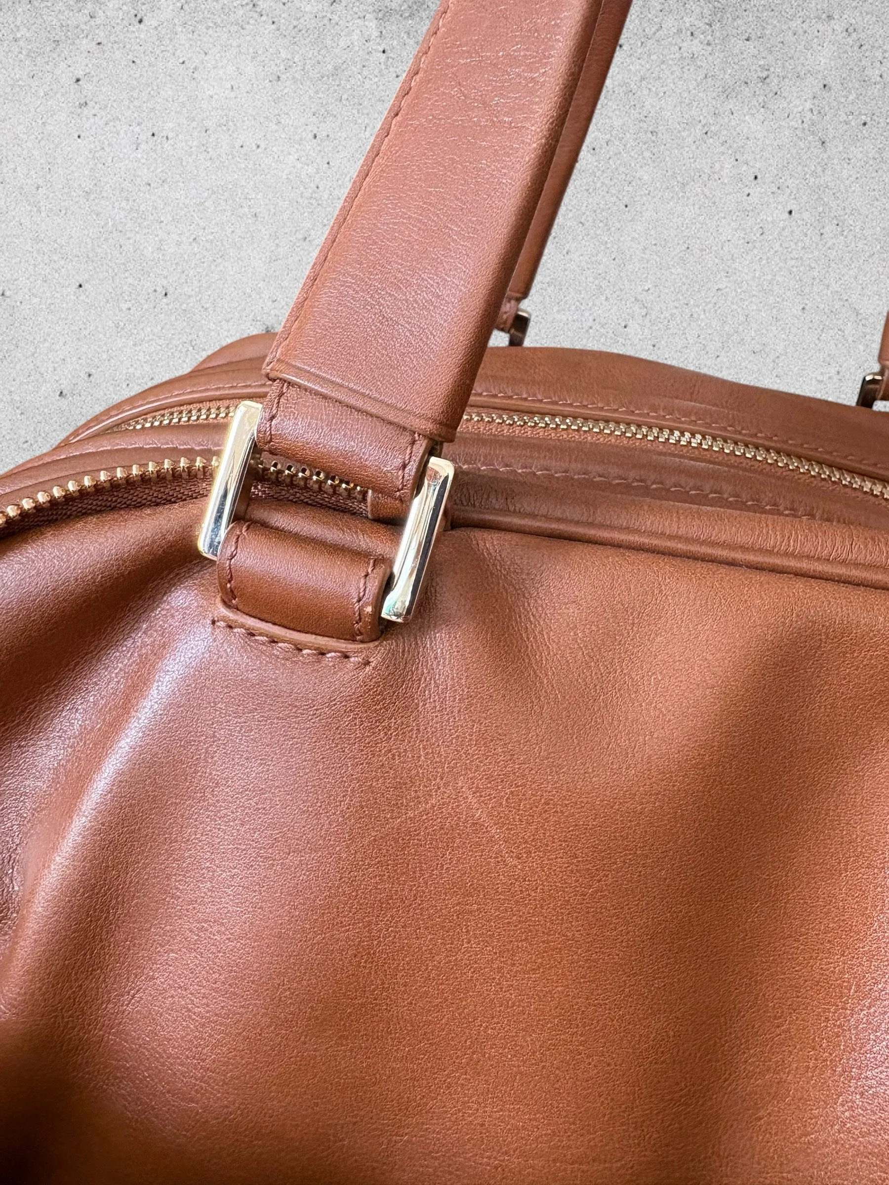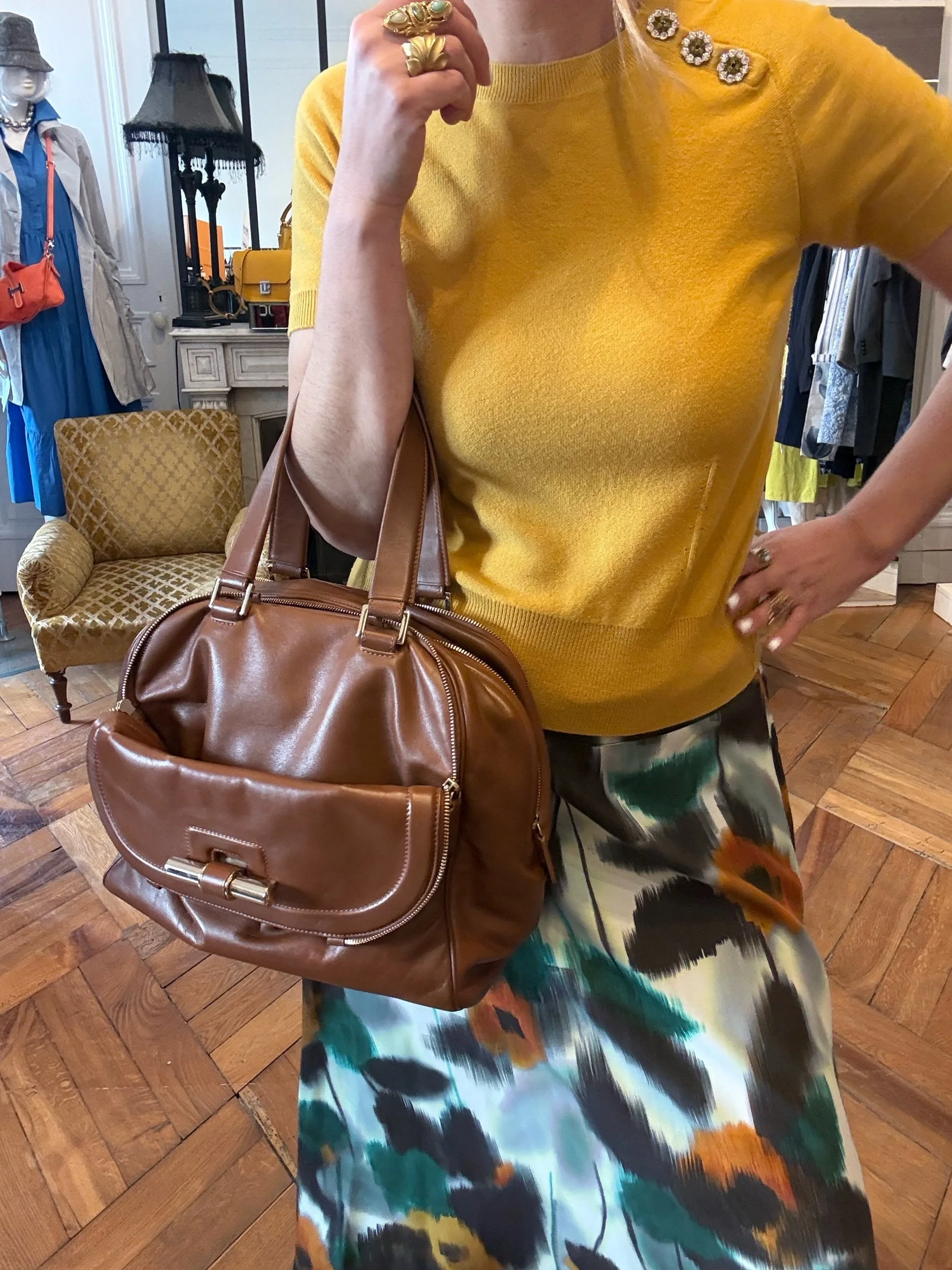 Sac Bowling JUSTINE en cuir caramel