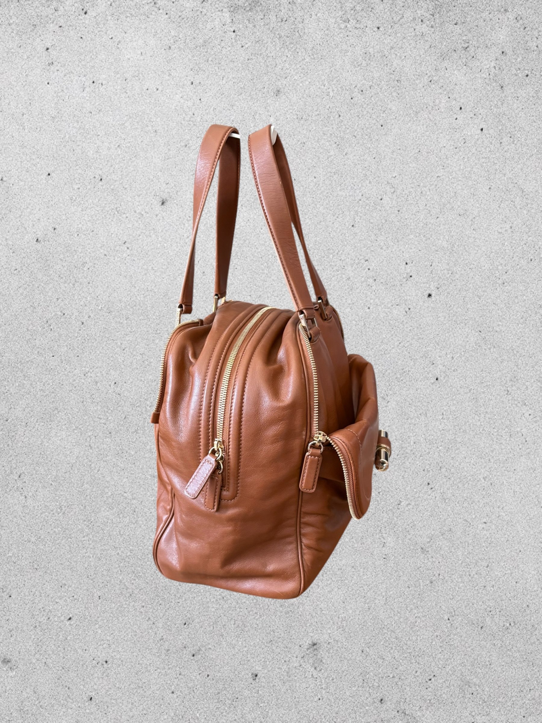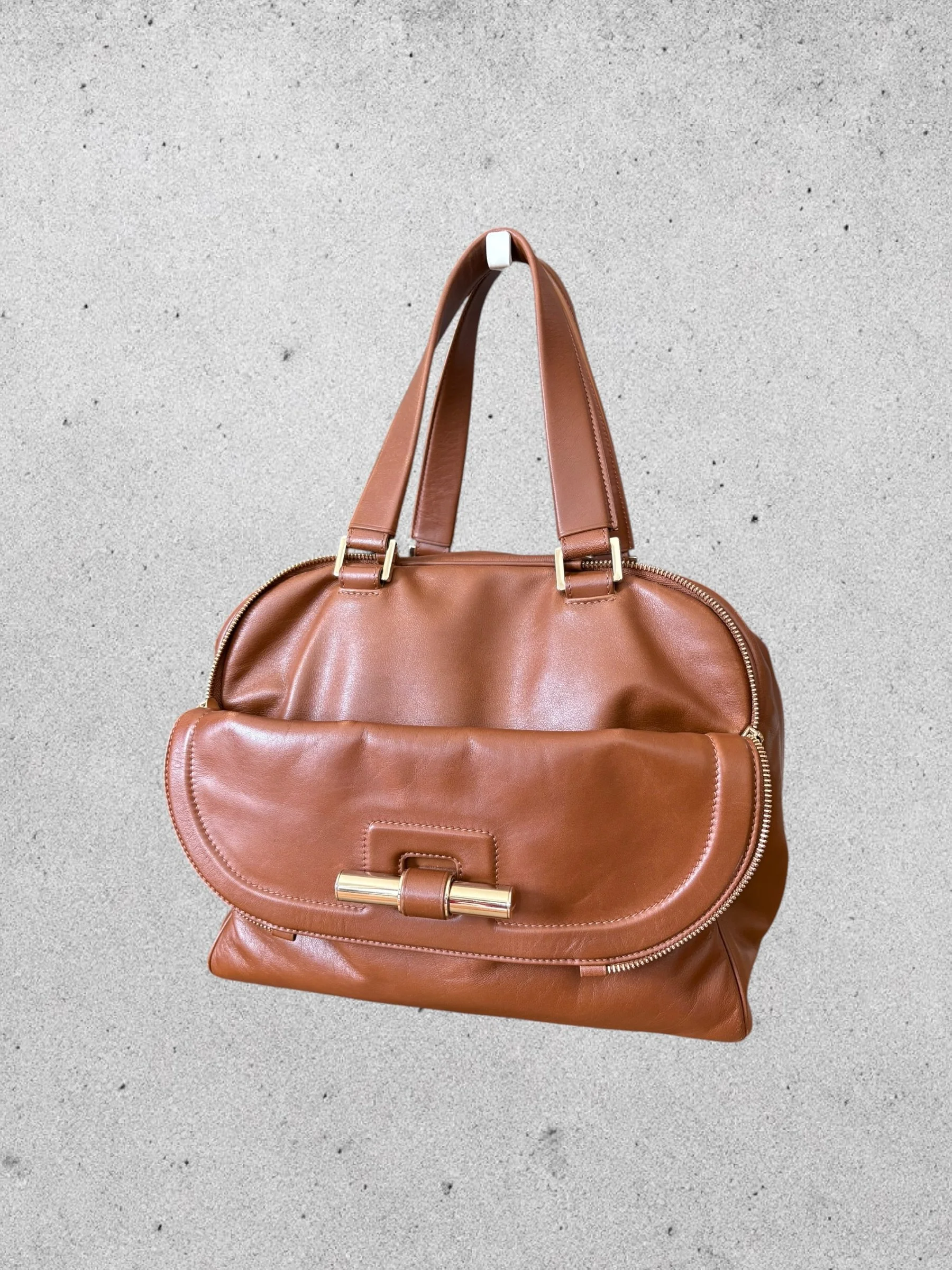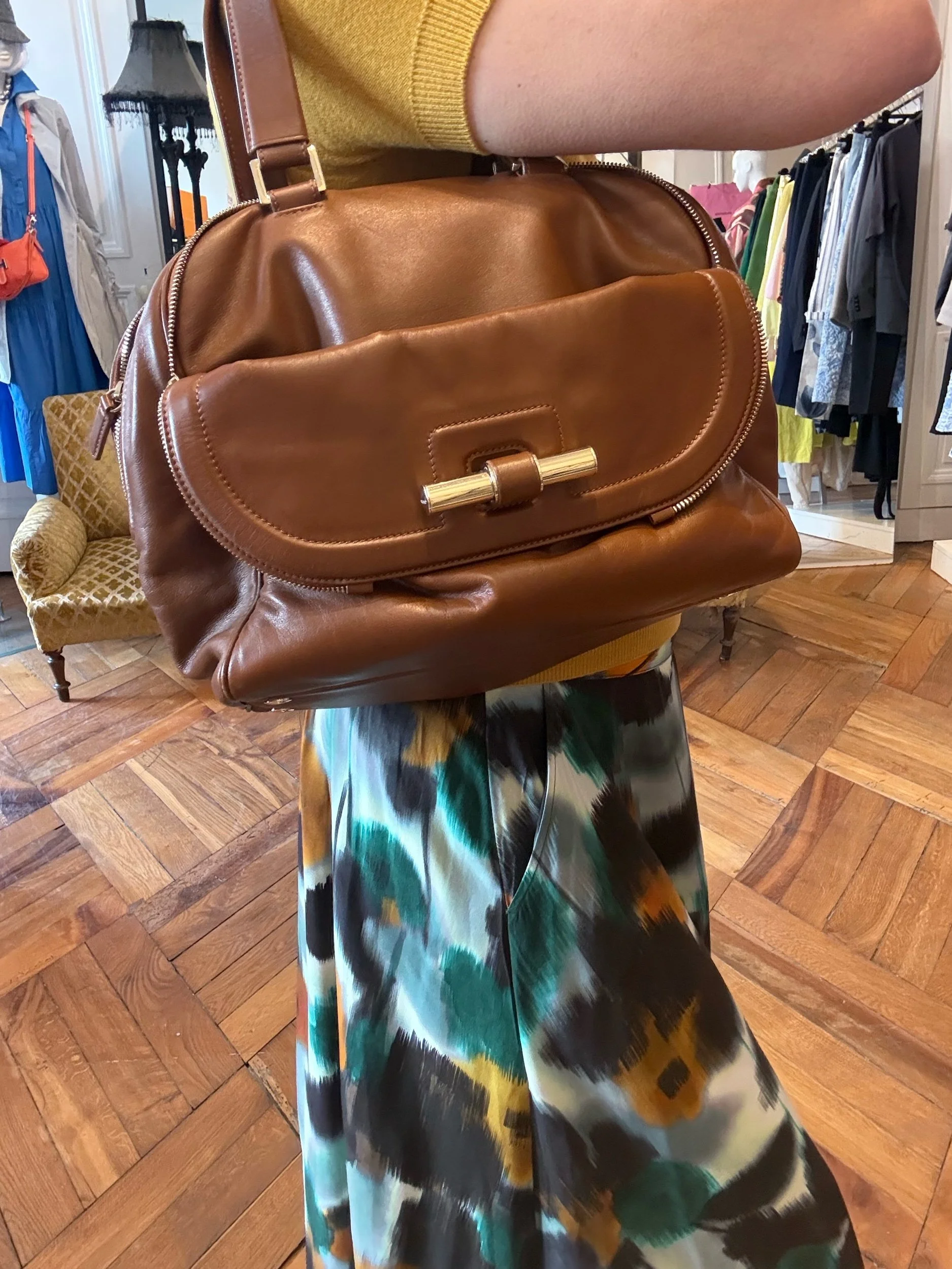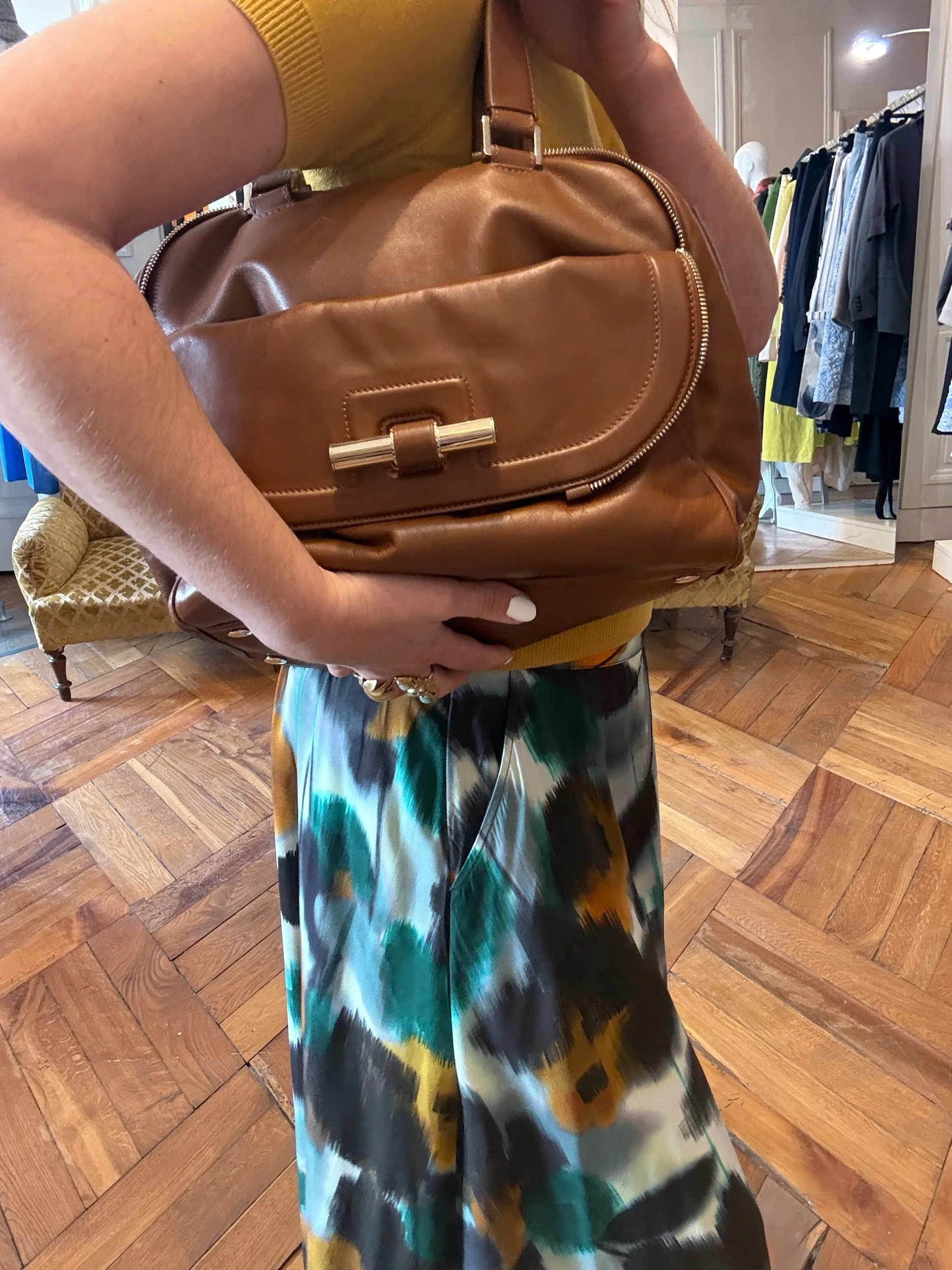 Sac Bowling JUSTINE en cuir caramel