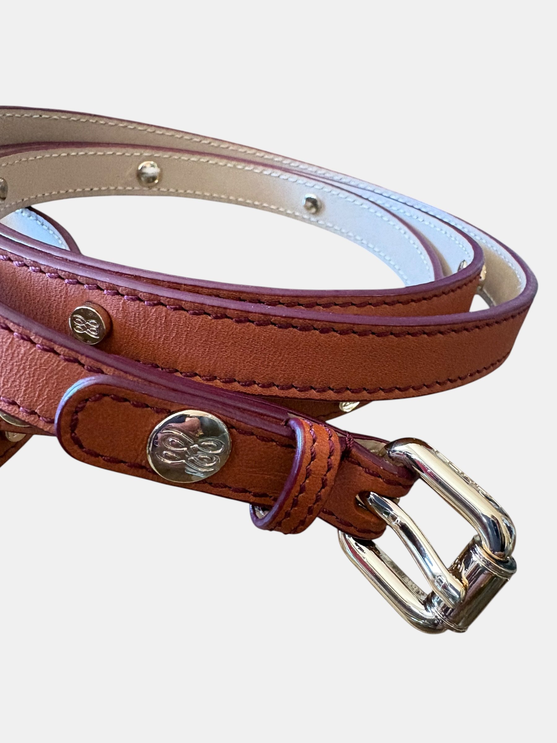Ceinture fine en cuir camel double tour