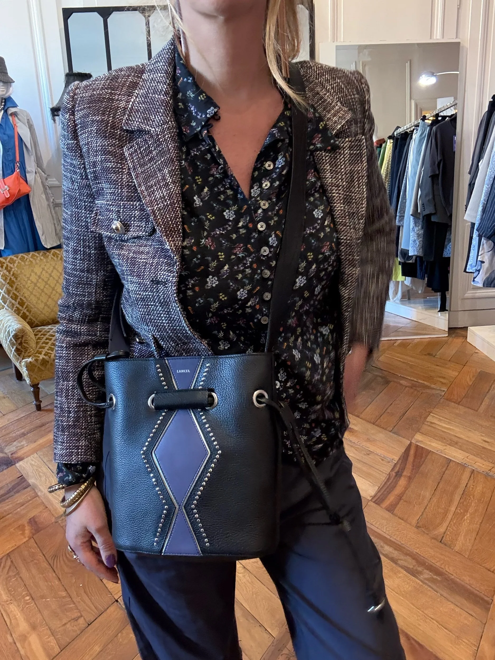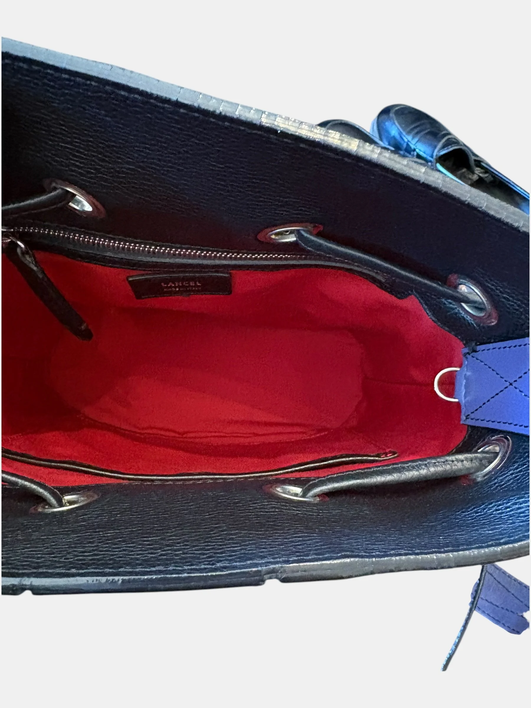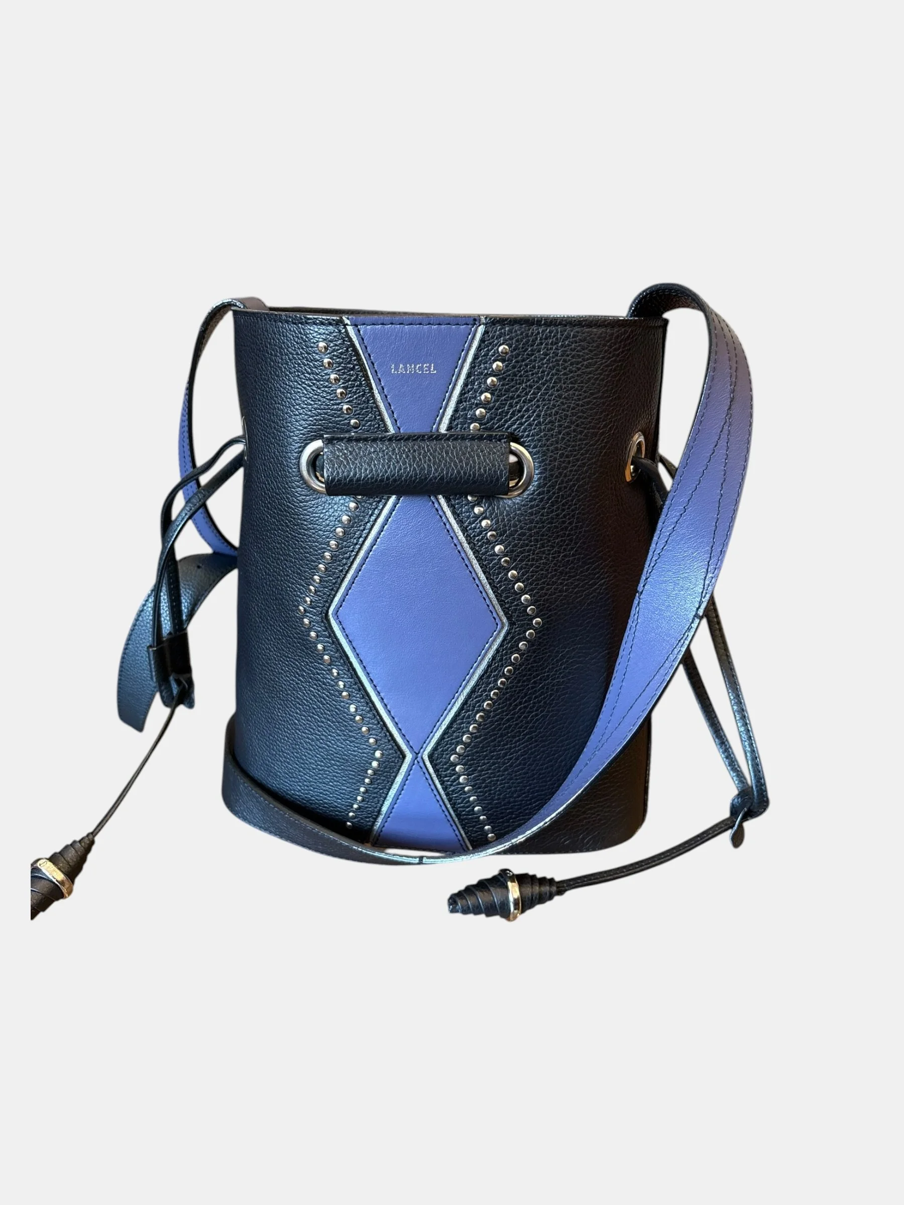 LANCEL en lettre argent imprimé sur le cuir