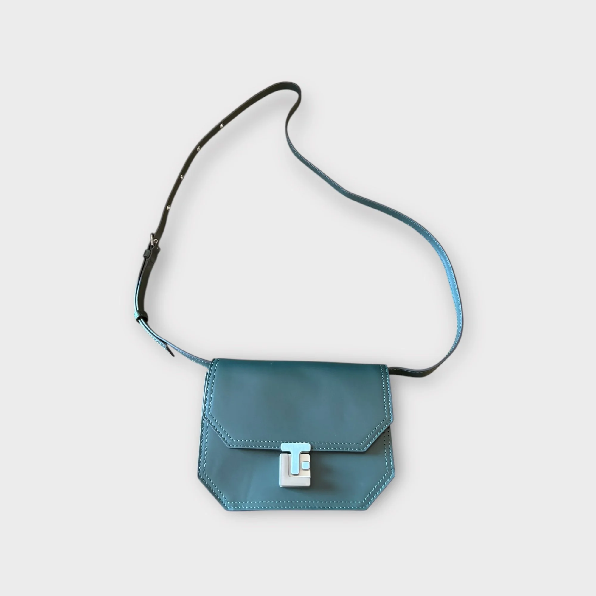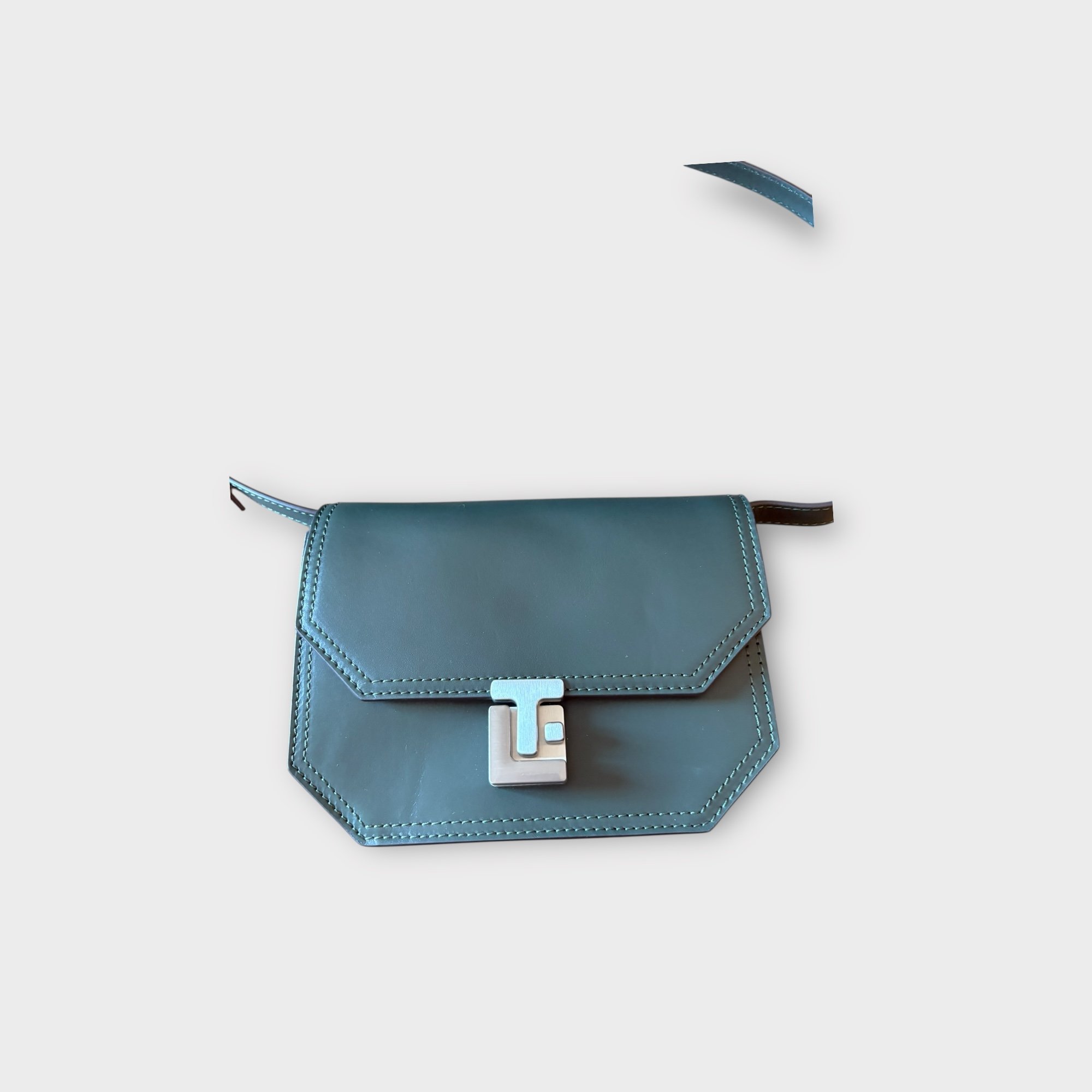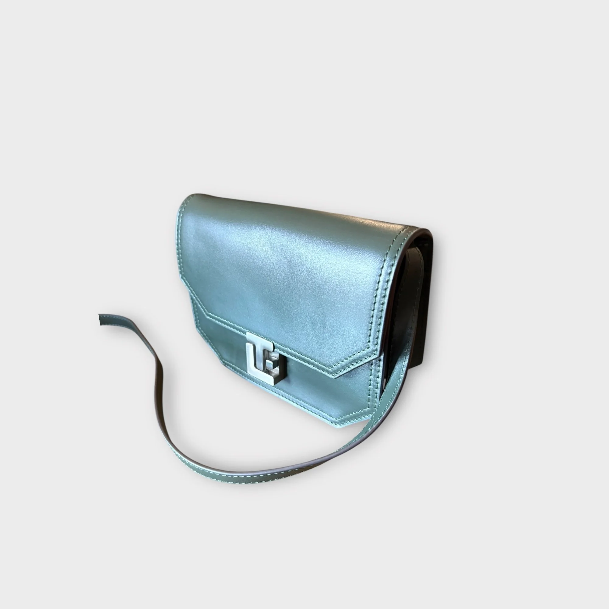 Fermeture par rabat réhaussé du fermoir logo LT en métal brossé argenté