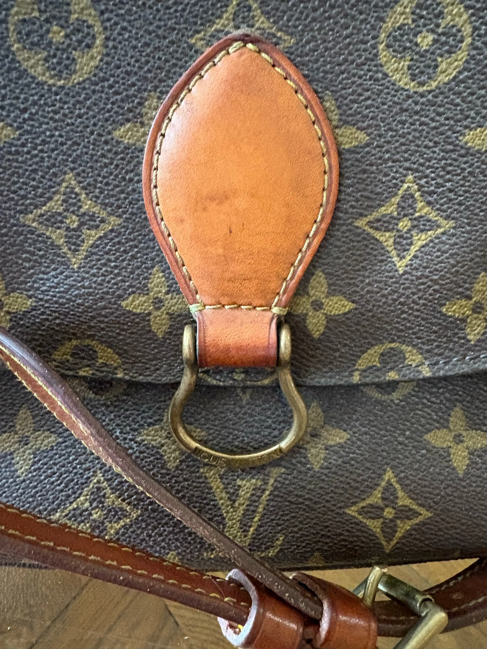 Rabat réhaussé d’un empiècement de cuir avec boucle en métal embossée LOUIS VUITTON