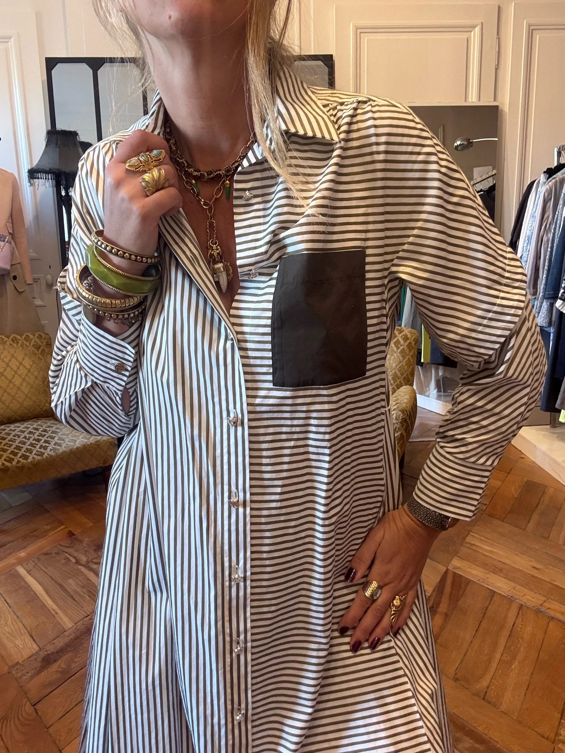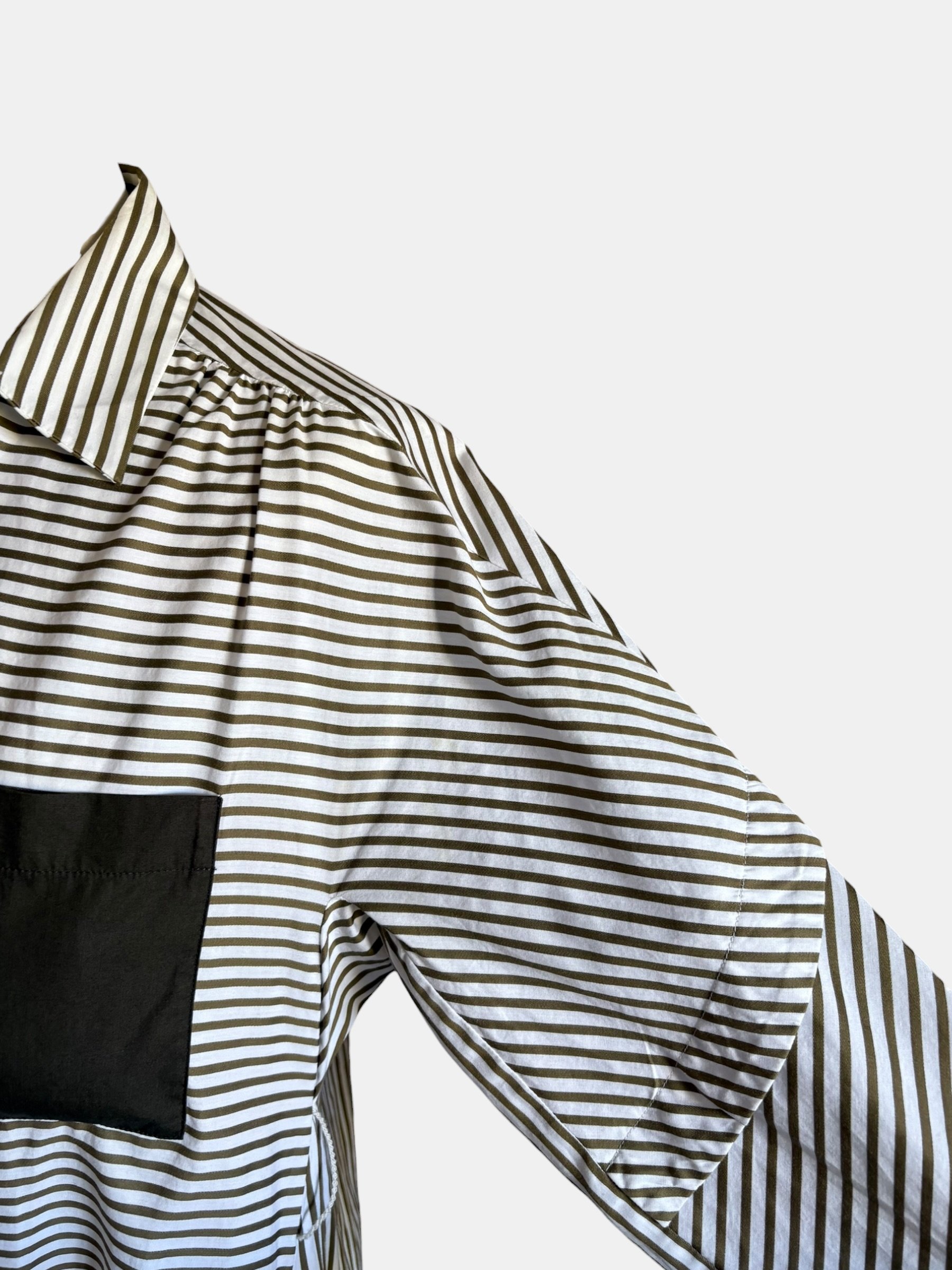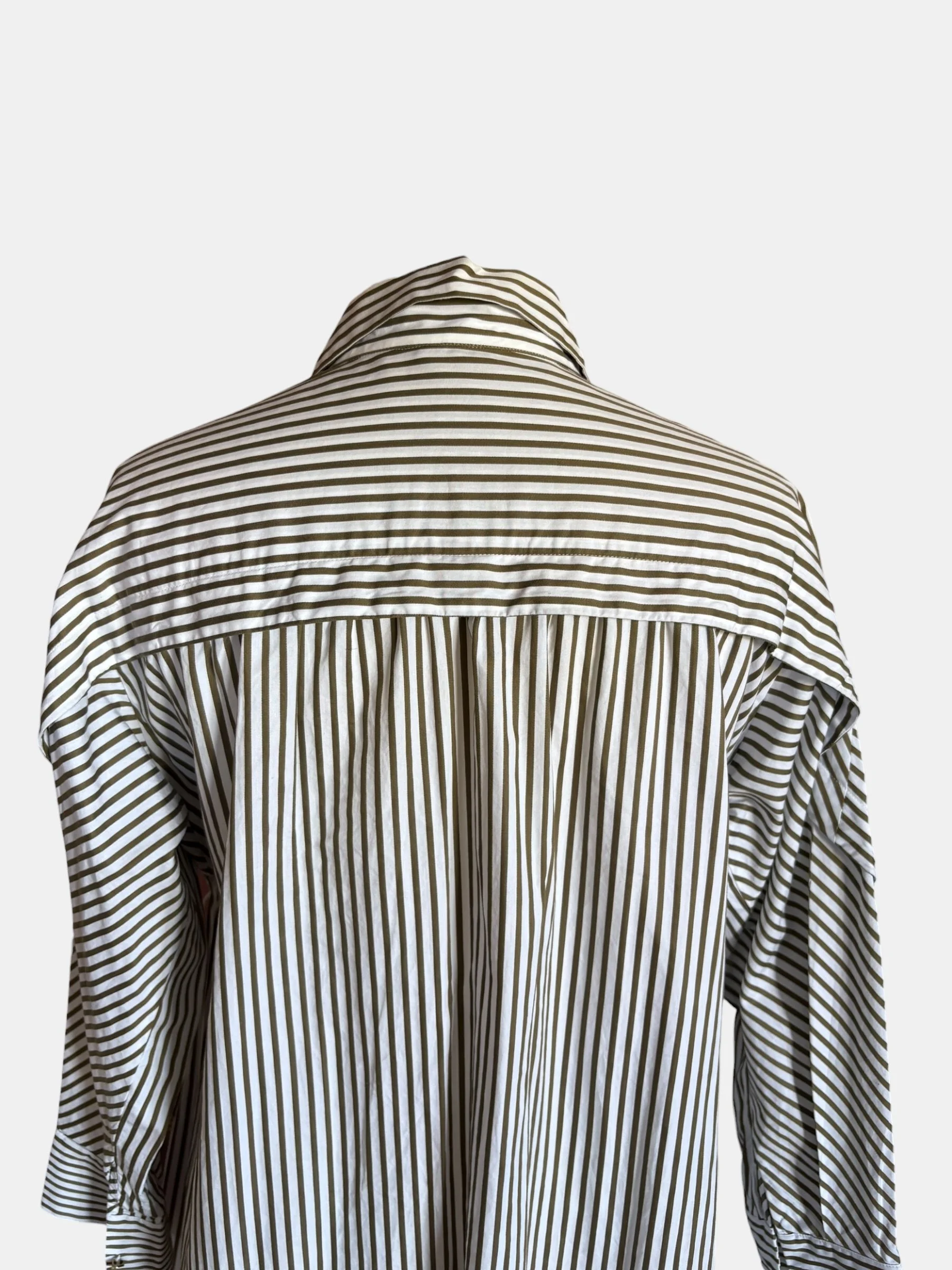 Robe chemise en coton à rayures blanches et kaki
