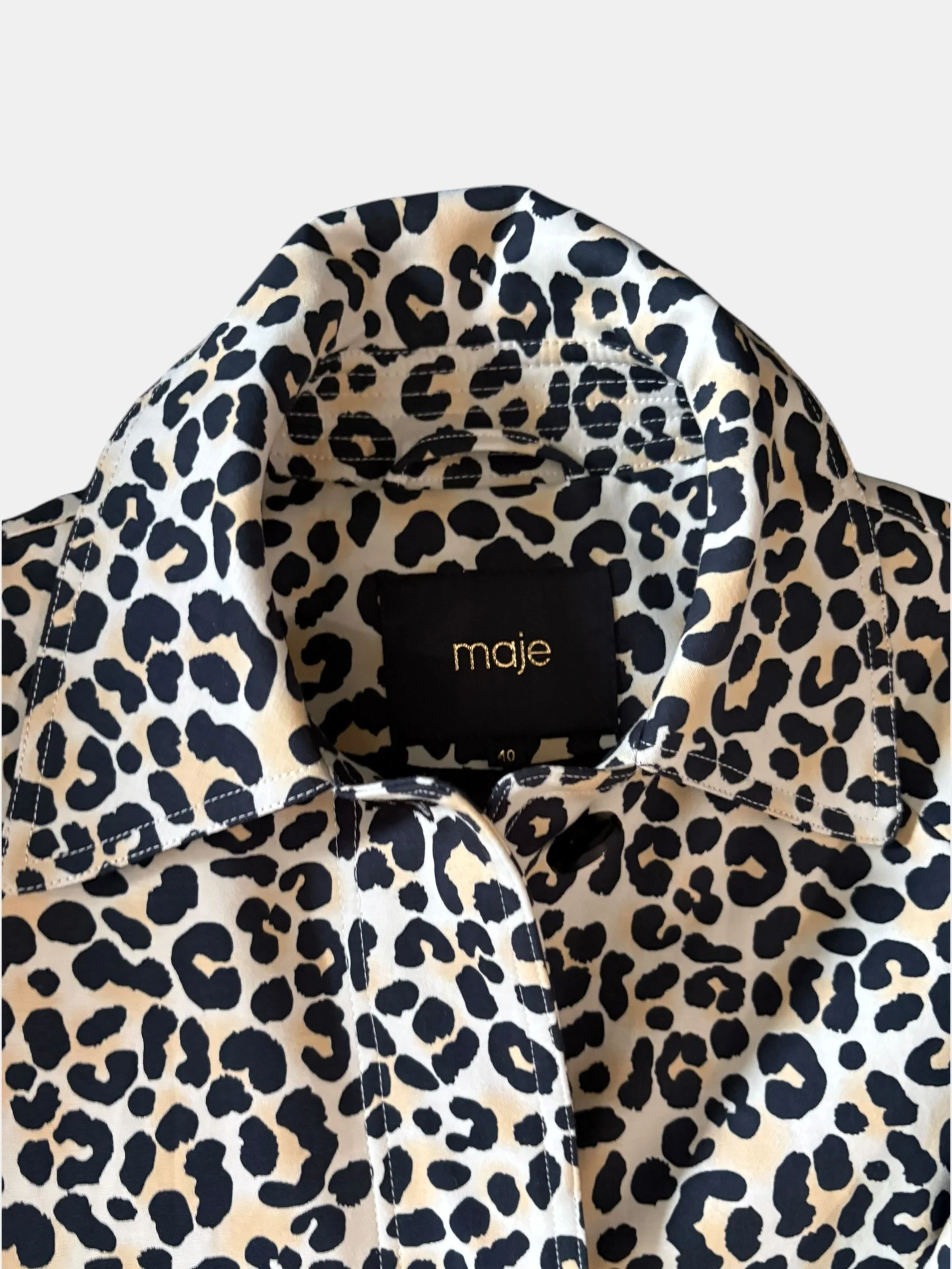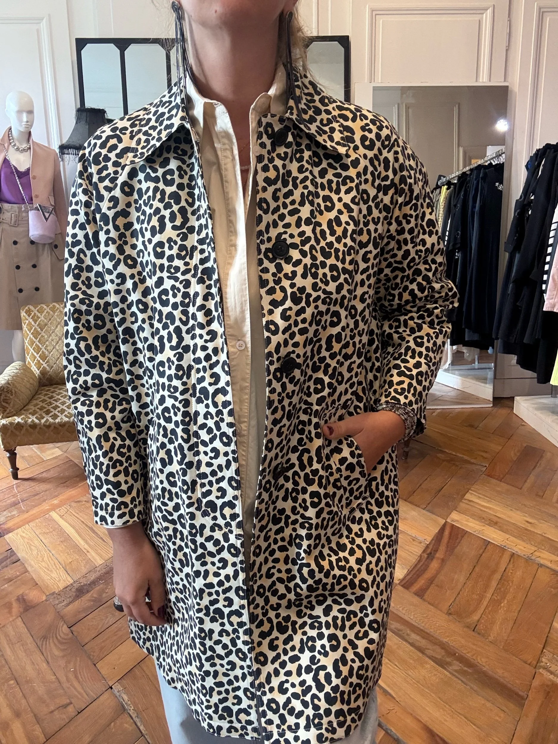 Trench ¾ esprit Manteau de demi saison en coton enduit imprimé léopard