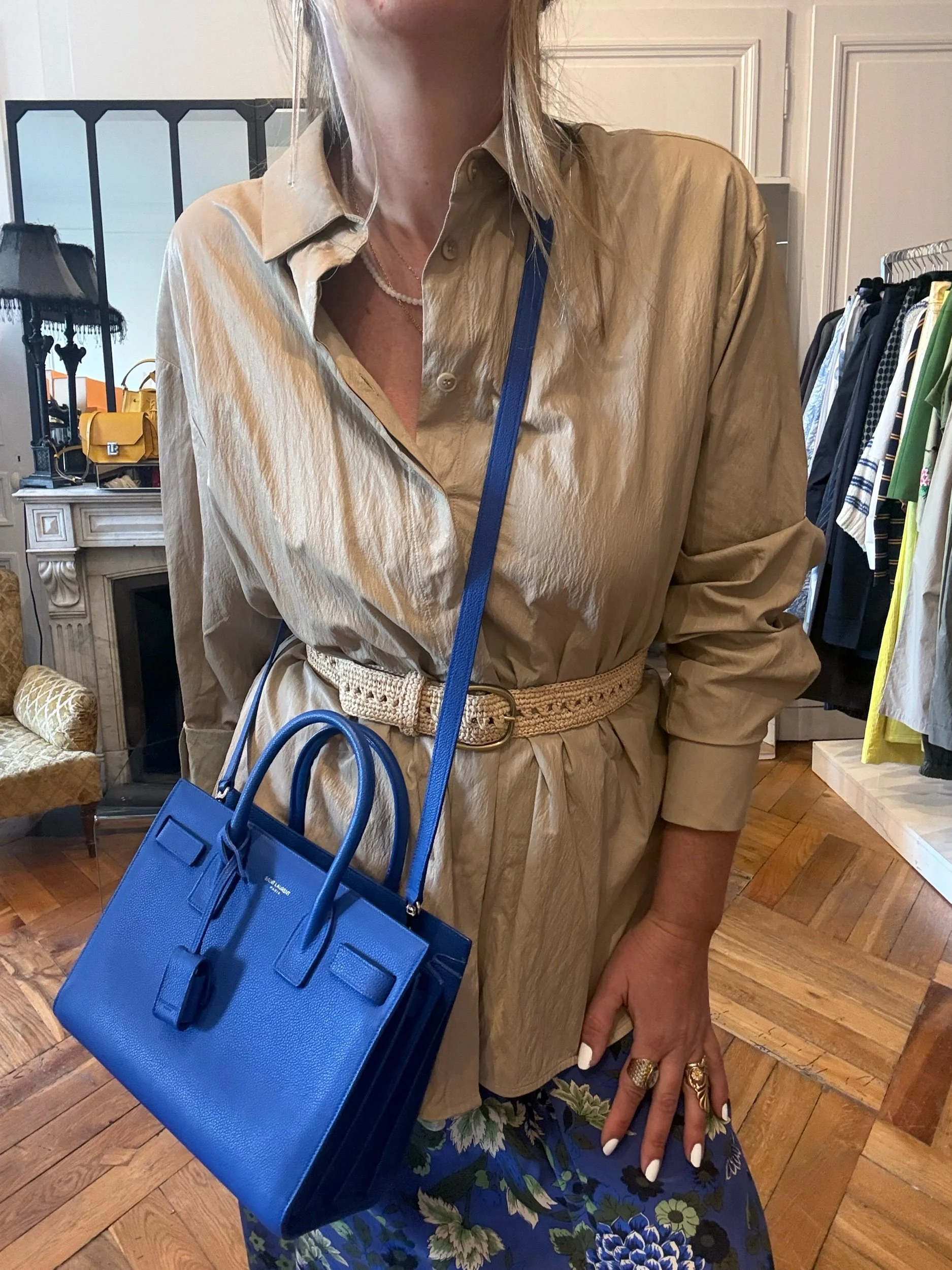 Porté épaule ou croisé par la bandoulière en cuir amovible par la bijouterie en métal argent