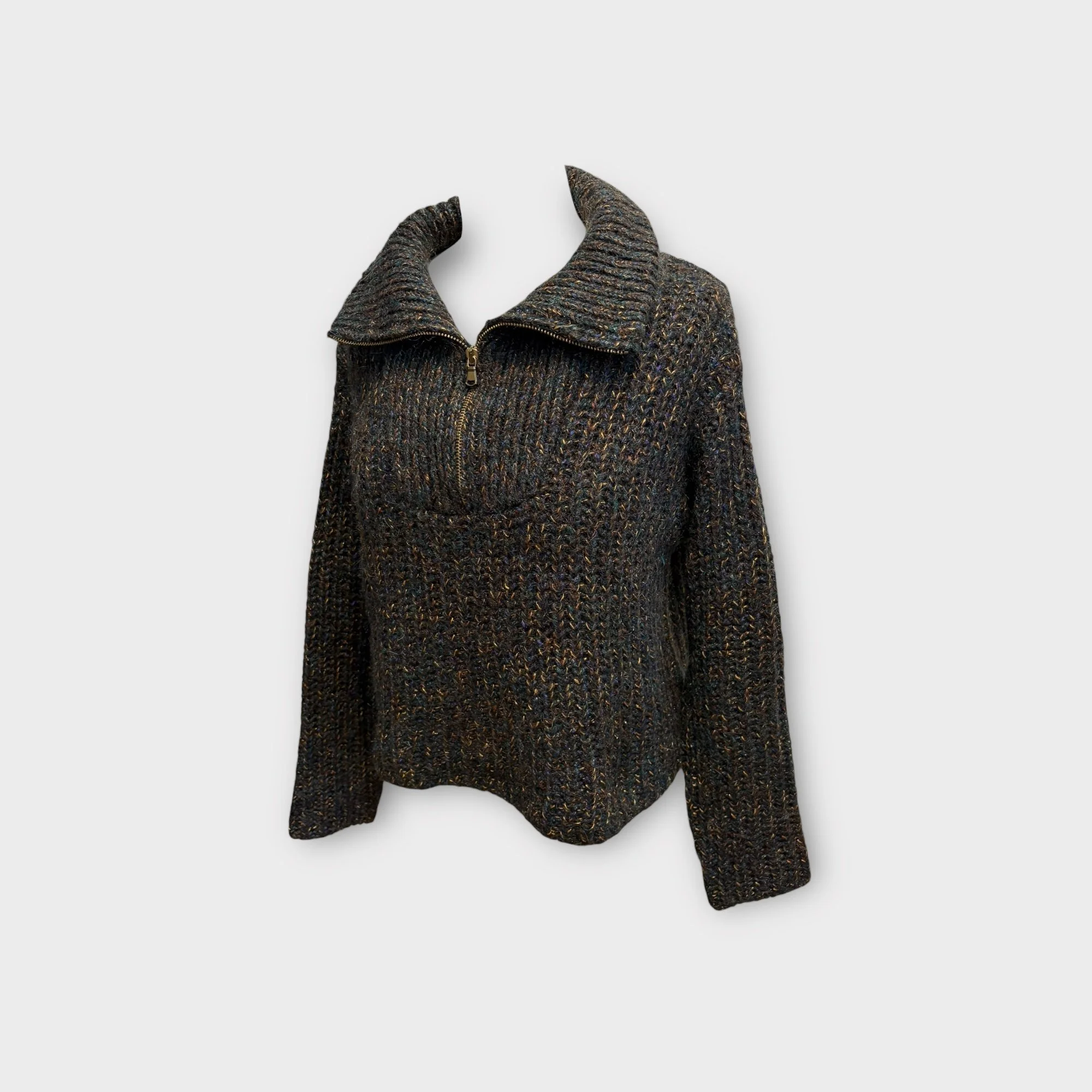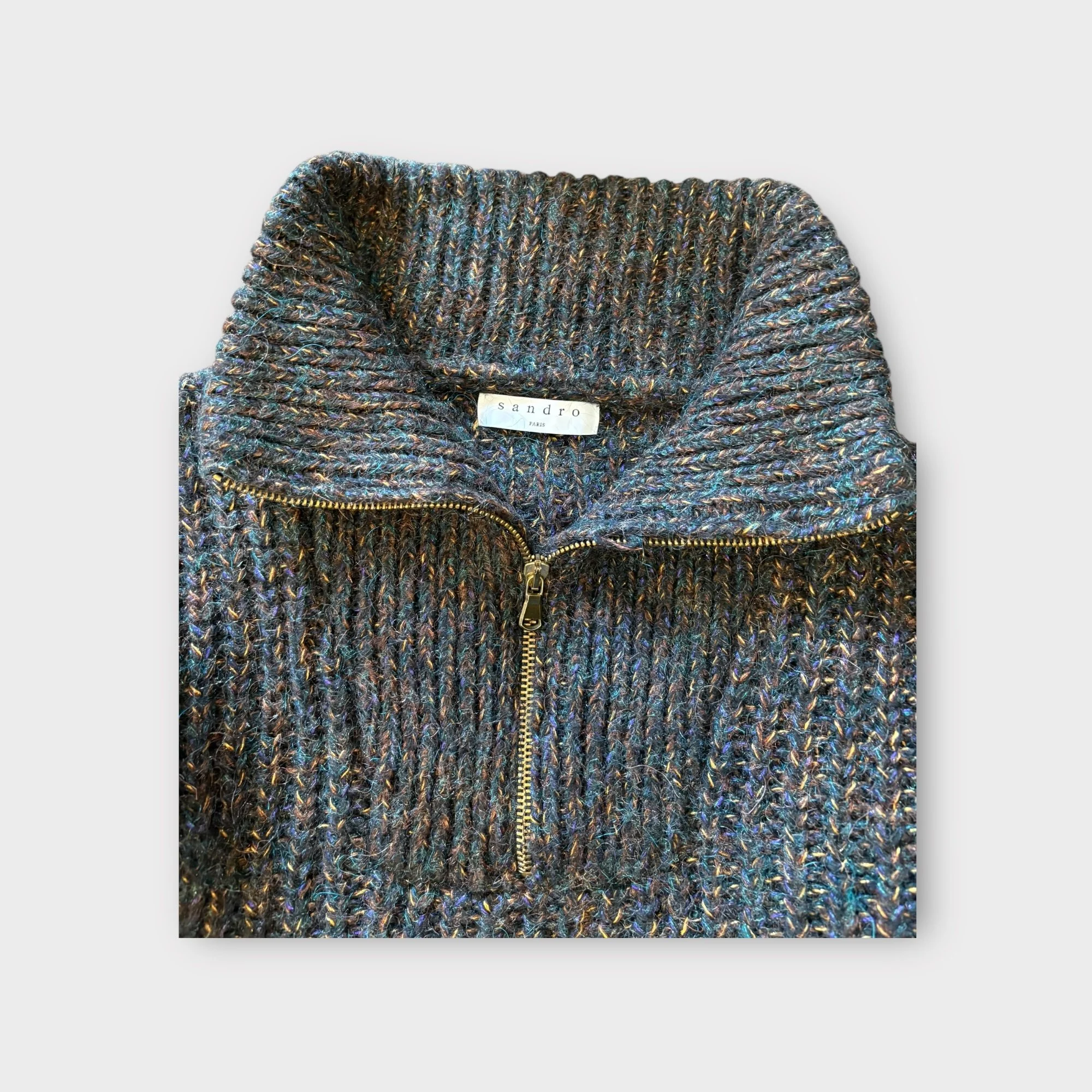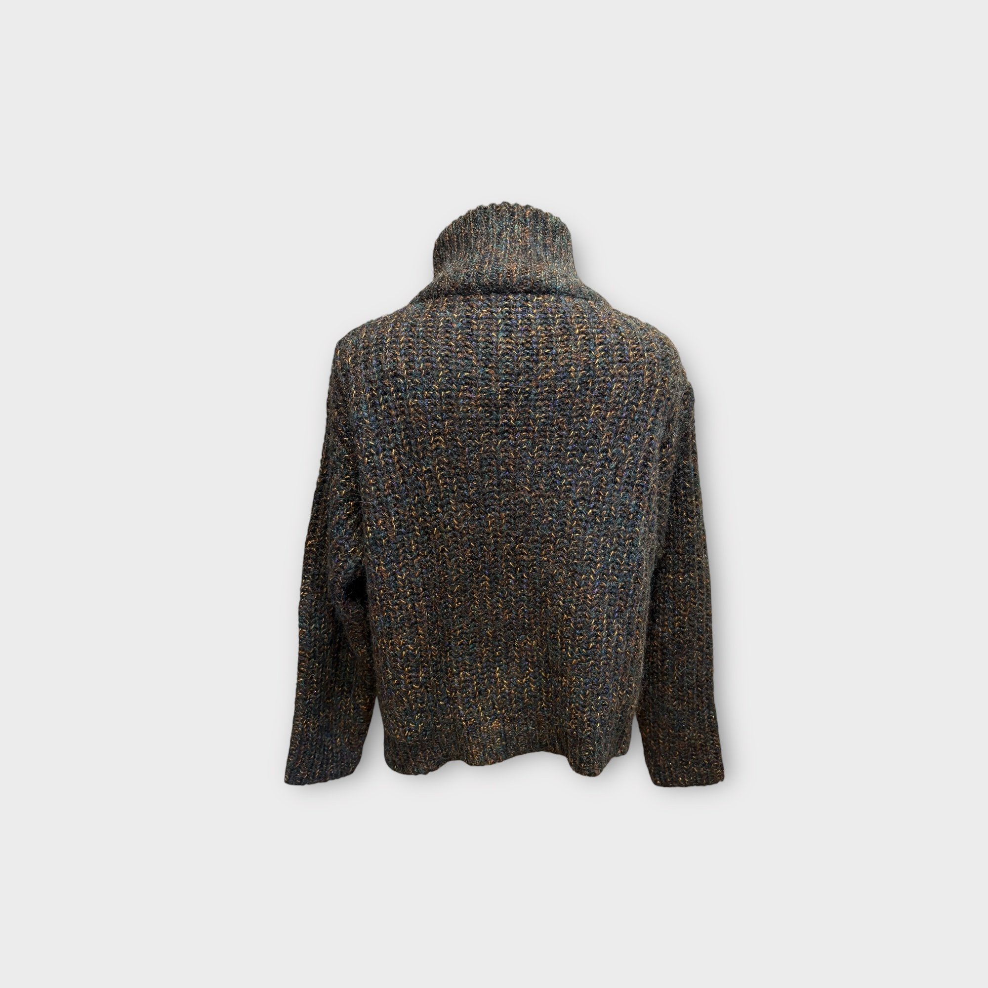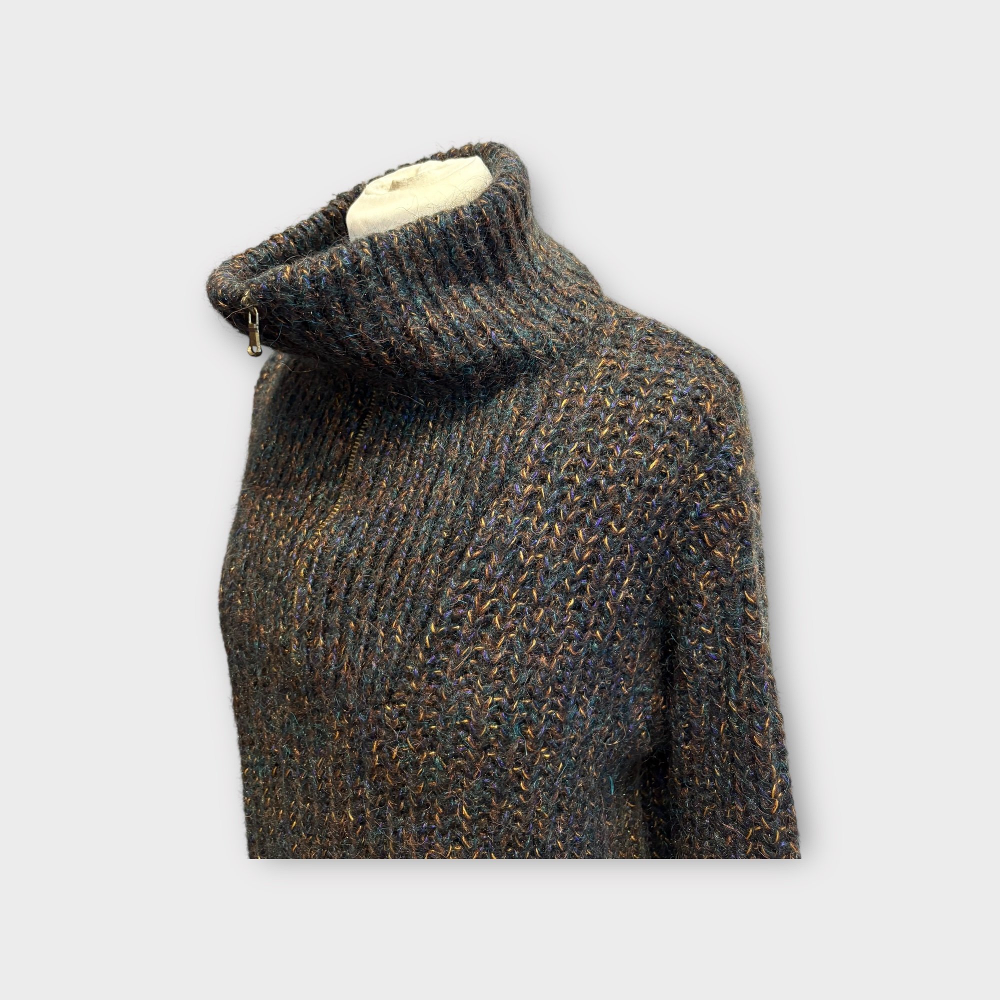 Maille chinée multico vert emeraude, choco, fil violet, doré