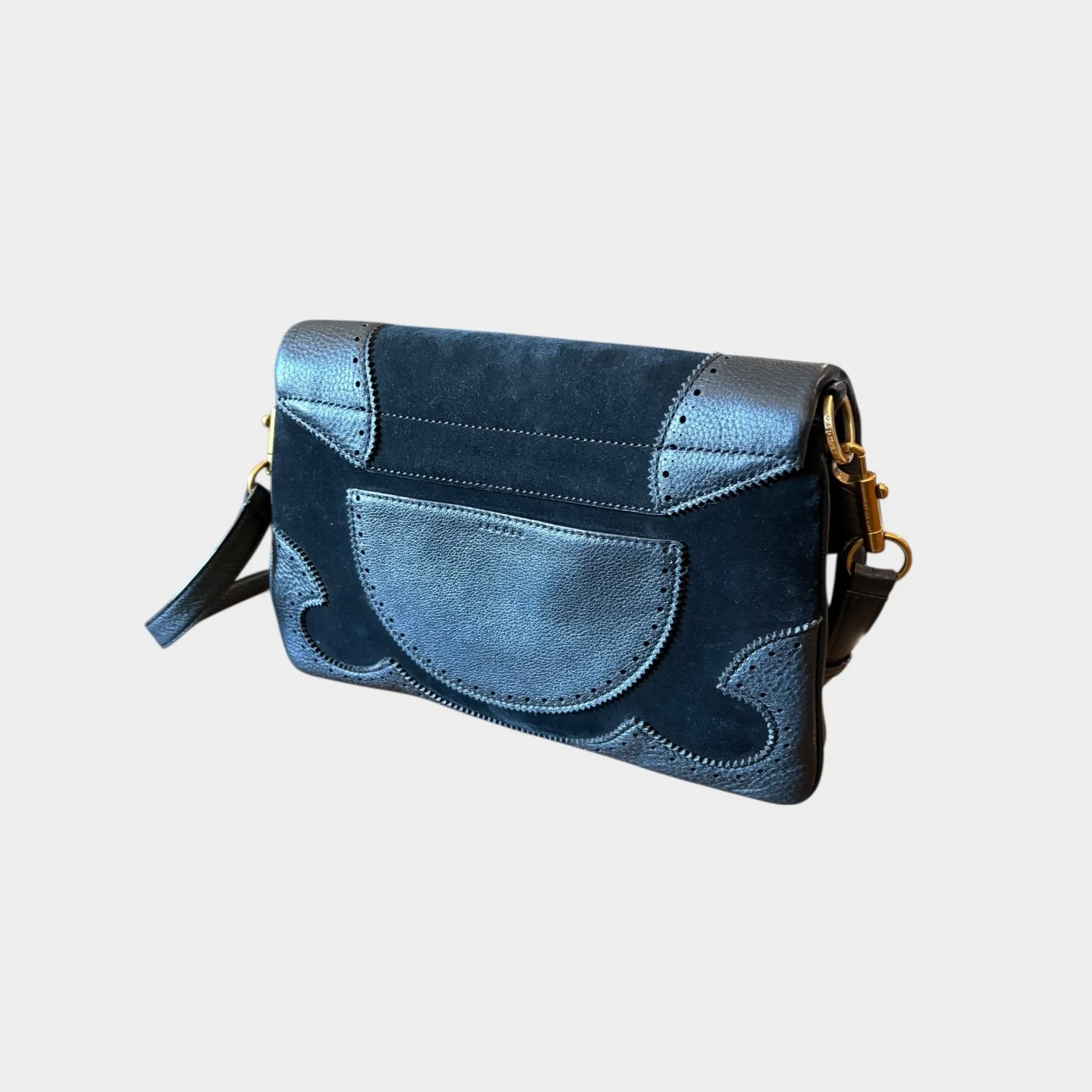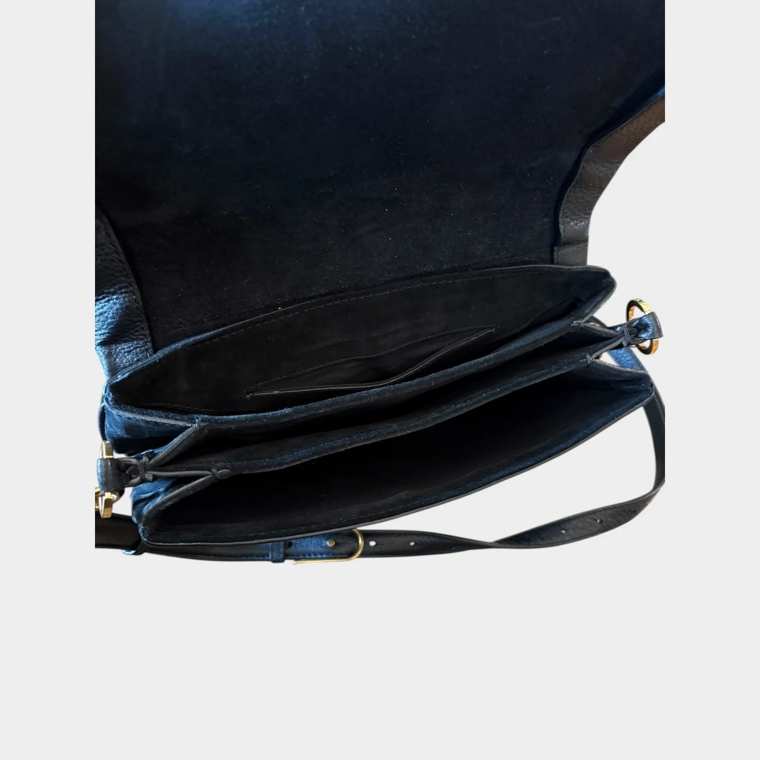 Porté épaule ou croisé par la bandoulière en cuir grainé amovible et réglable