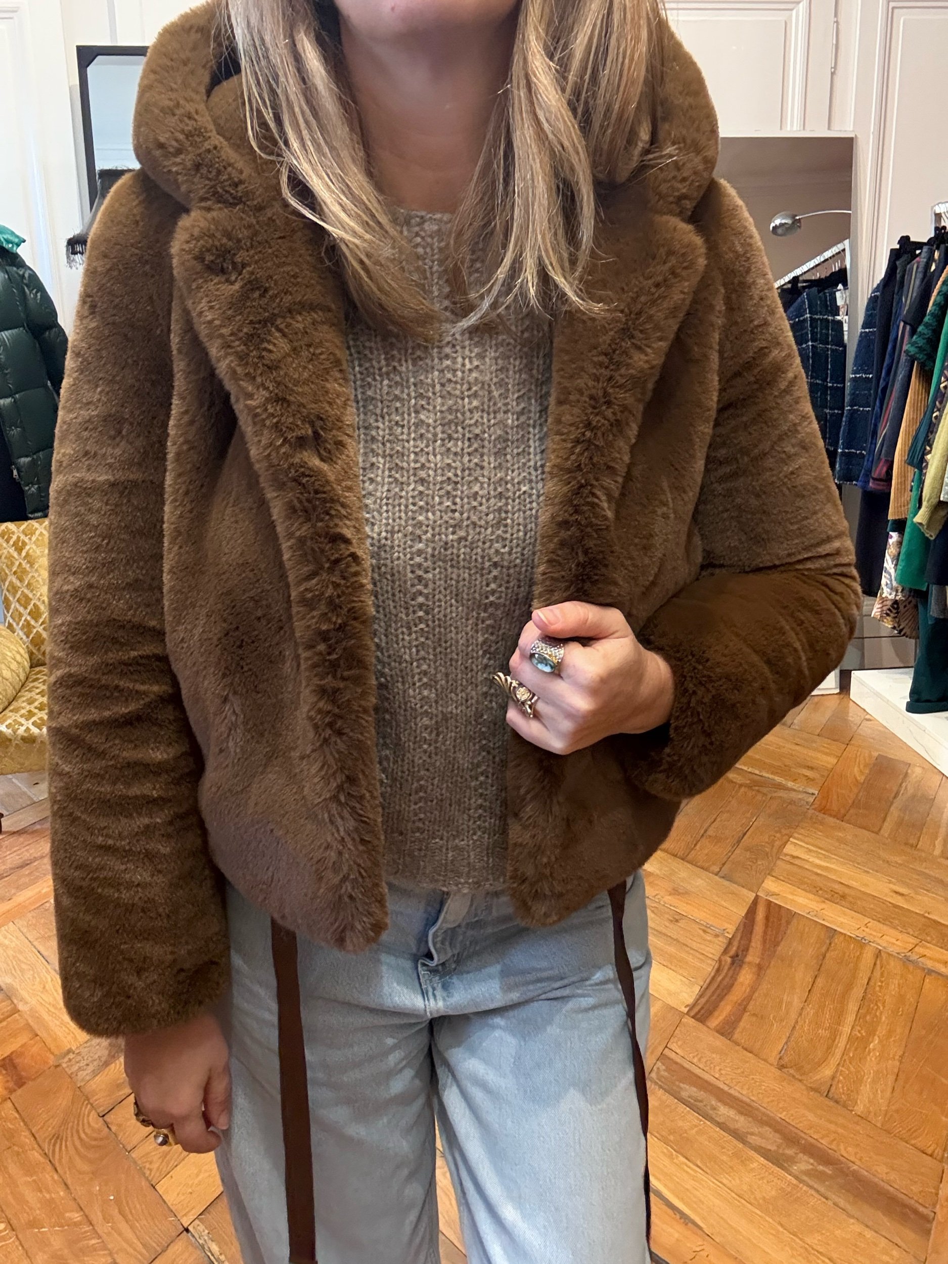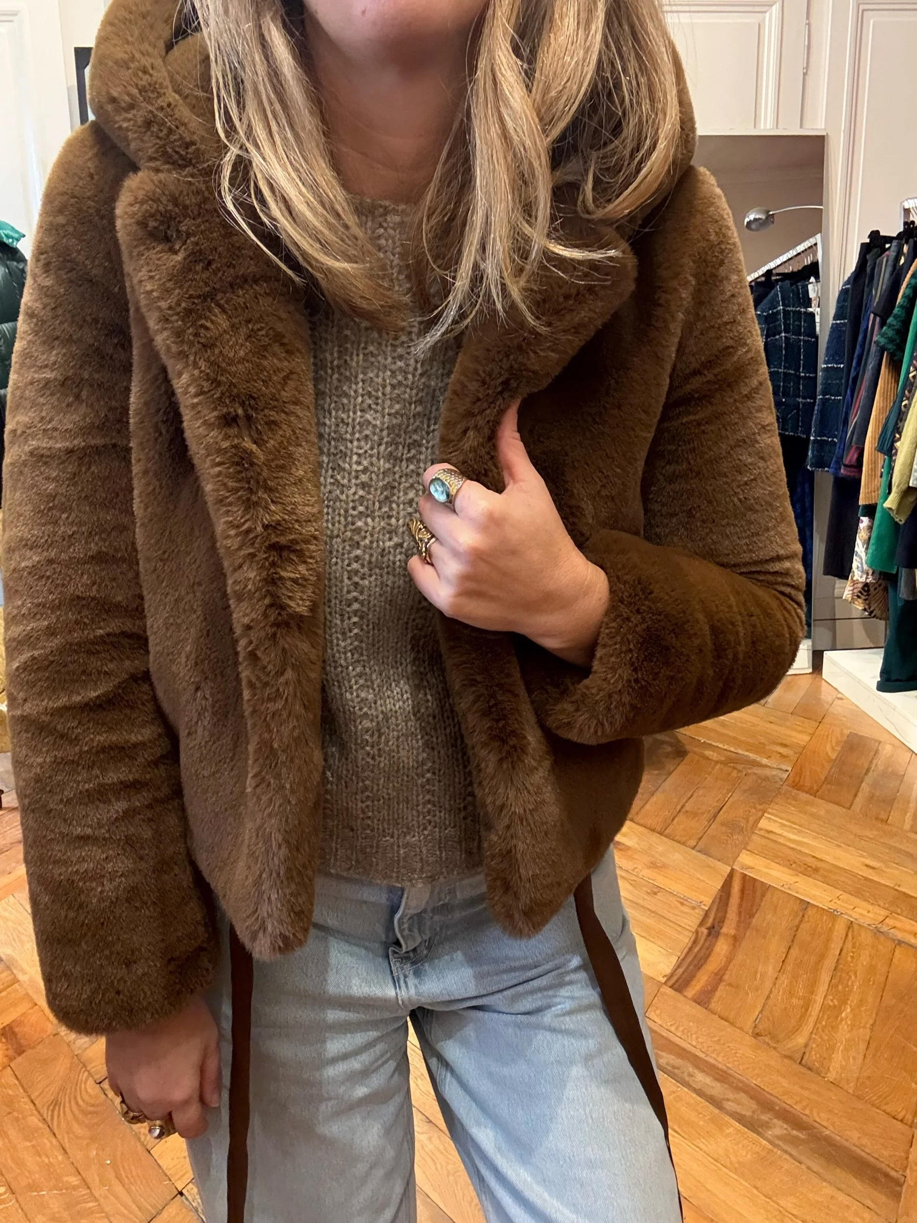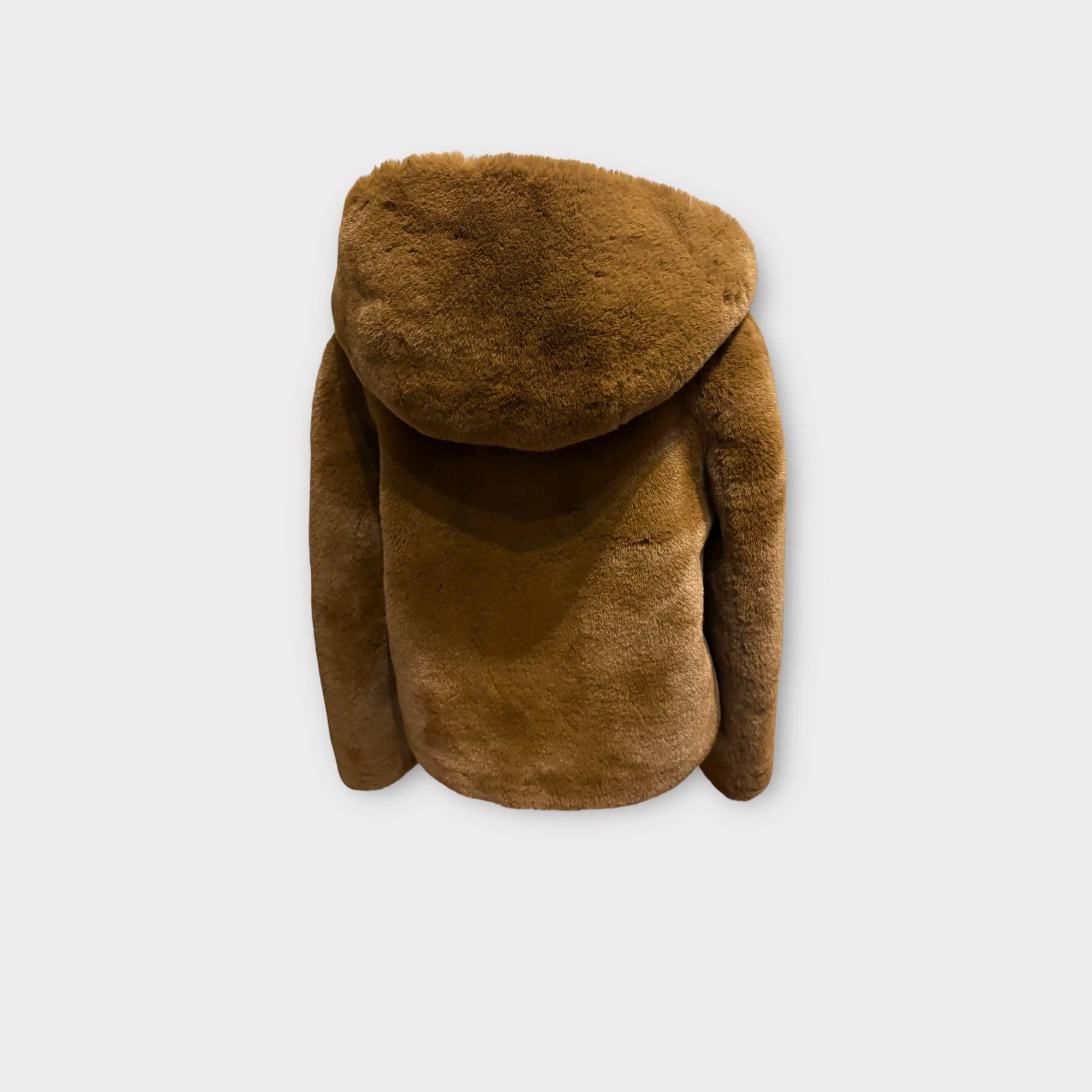 Le + selon ADM: La Veste en Fausse Fourrure Caramel à capuche TENDANCE est au Showroom ADM