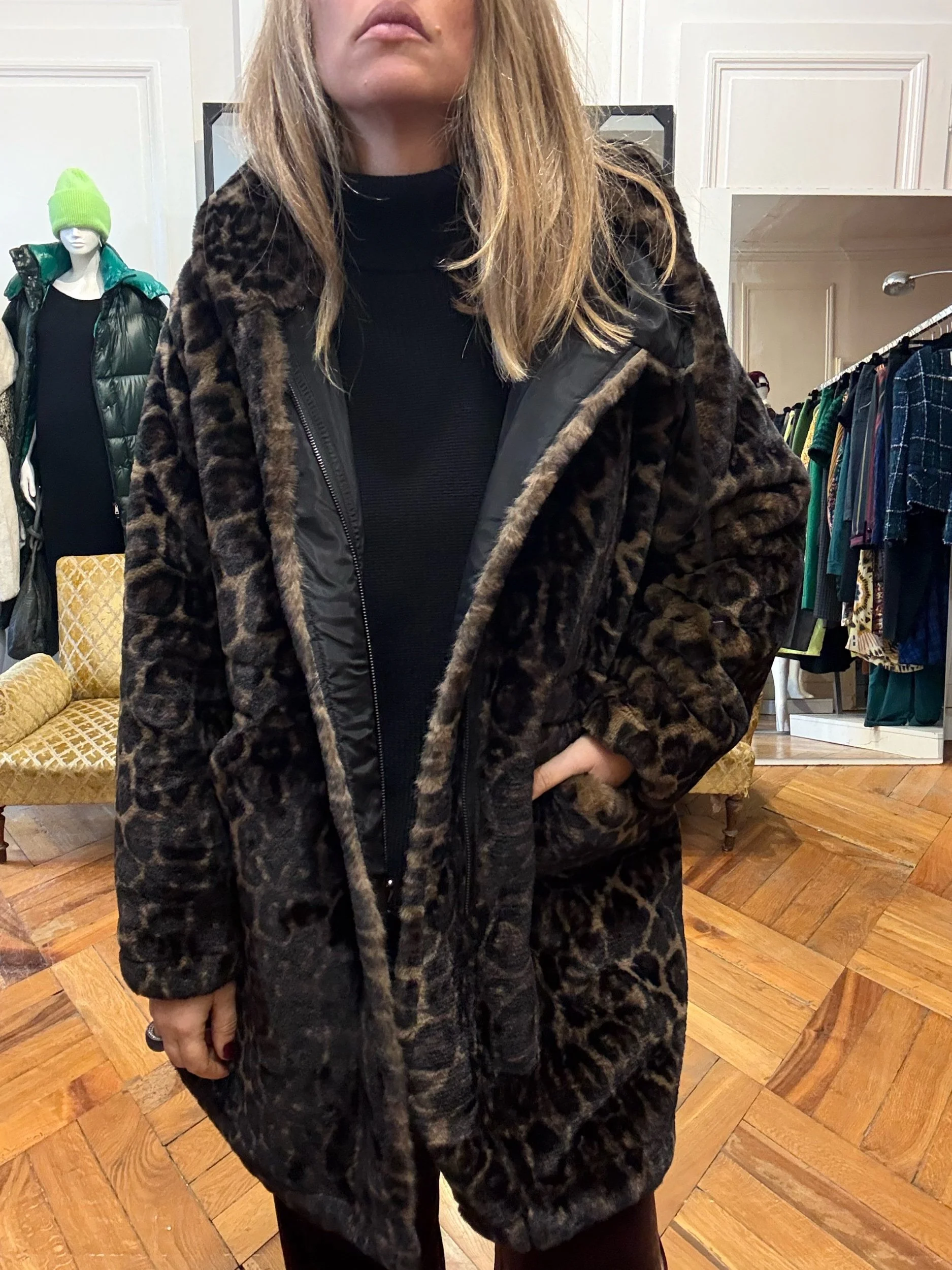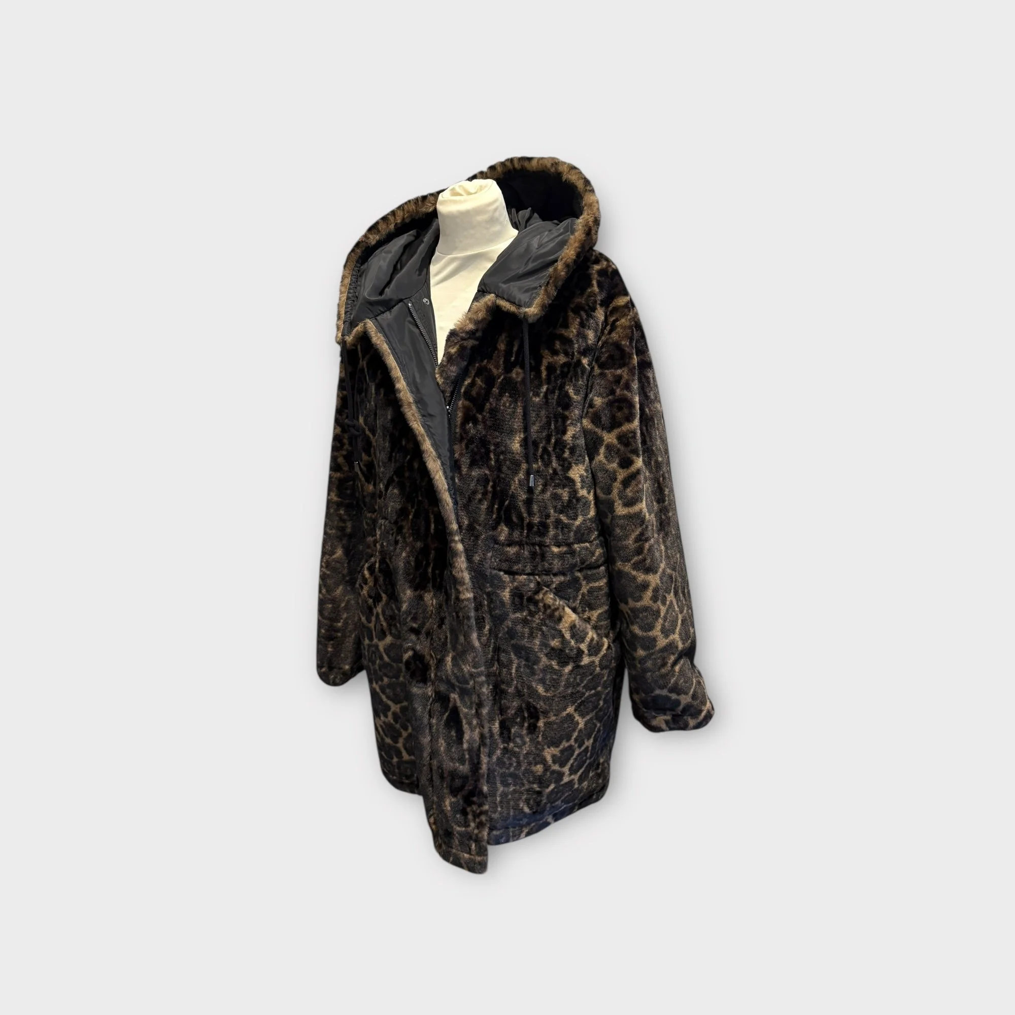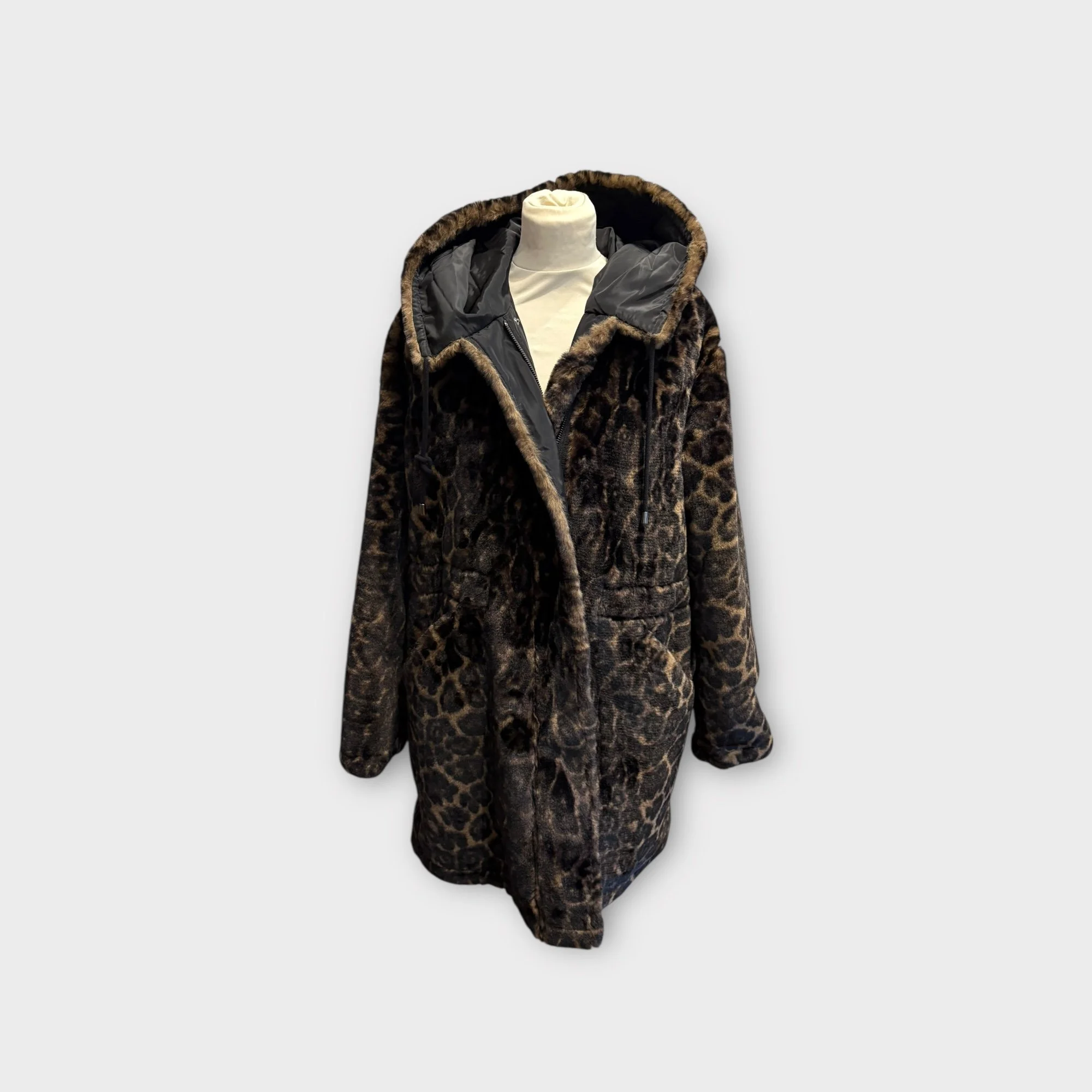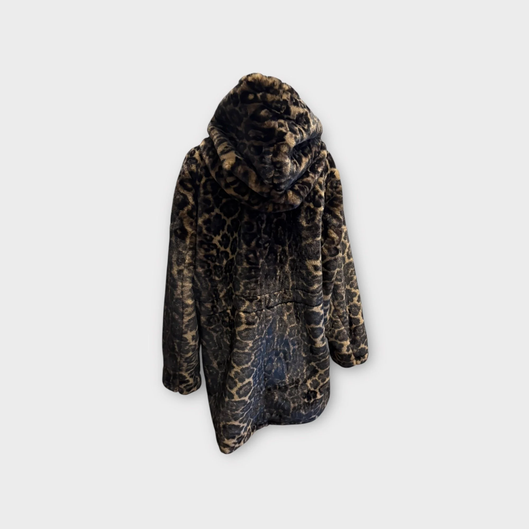 Manteau réversible à capuche: 1 face en fausse fourrure léopard