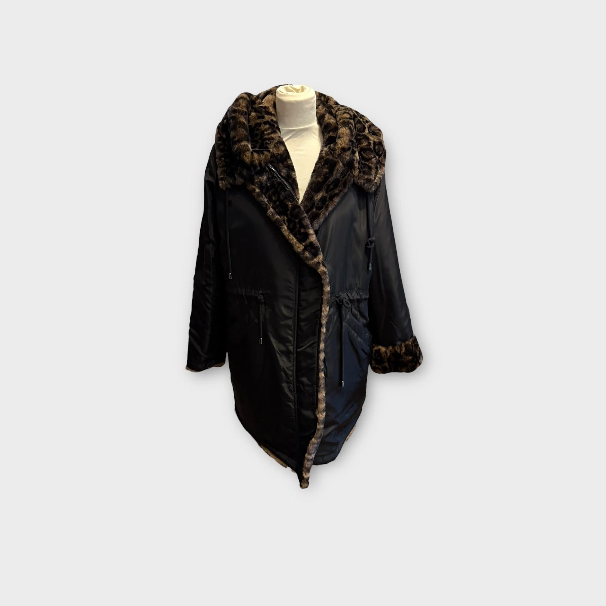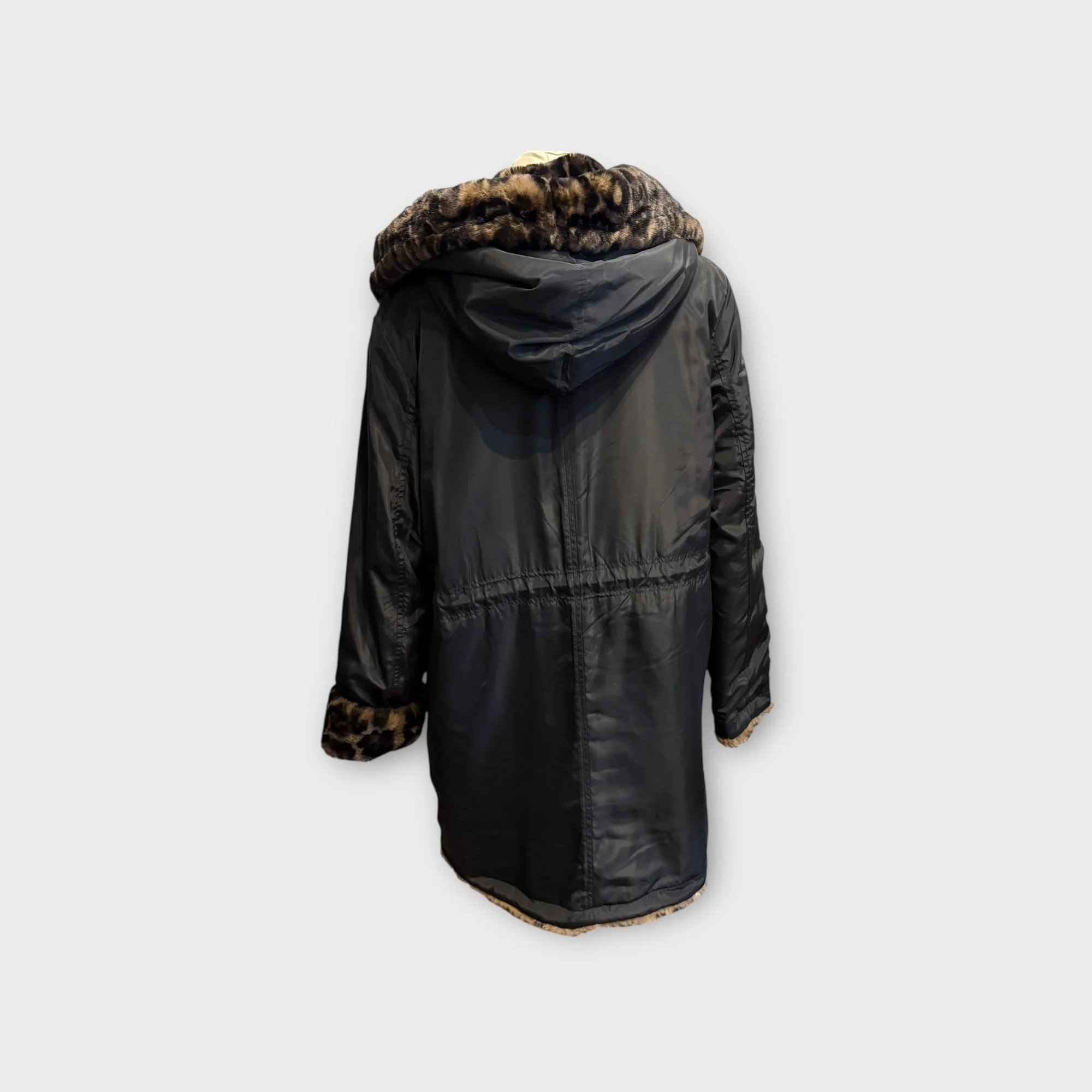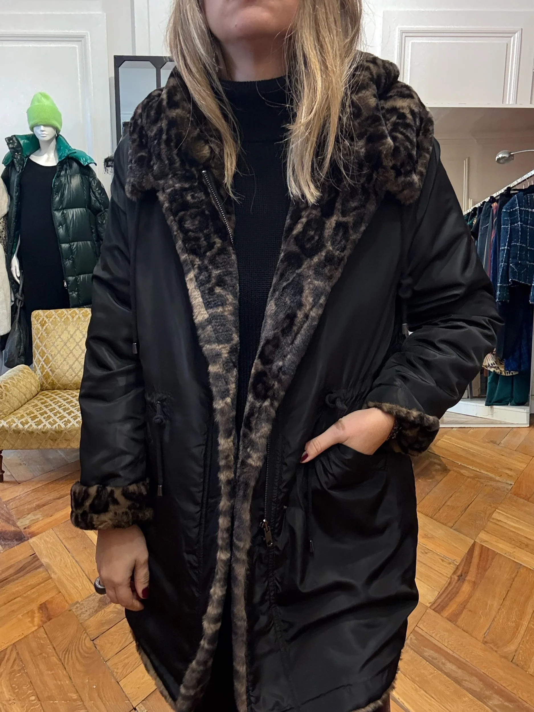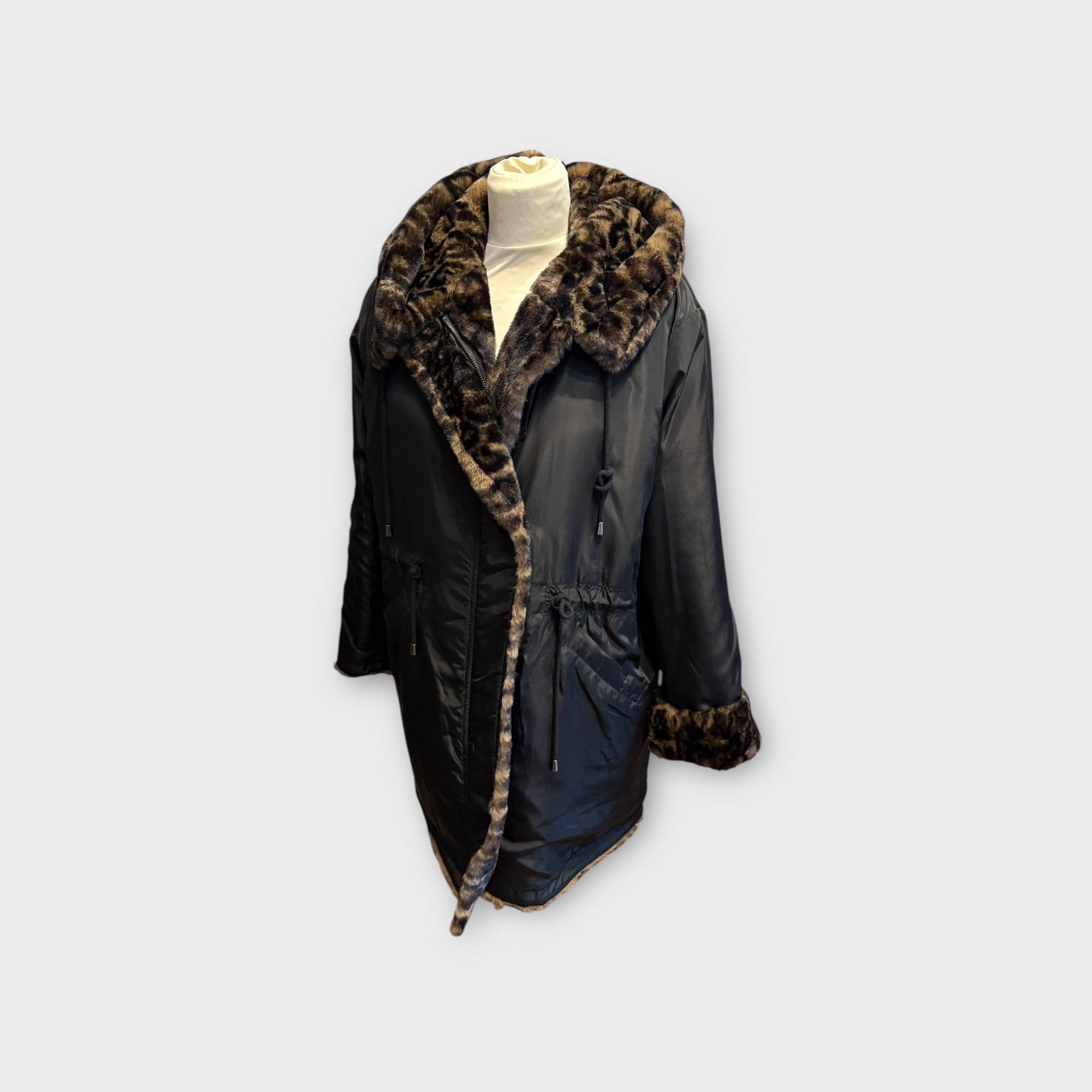 Manteau réversible à capuche: 1 face en fausse fourrure léopard