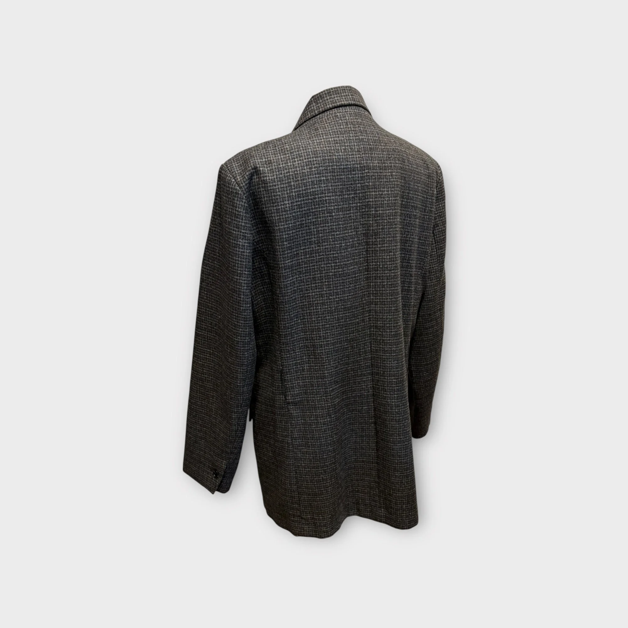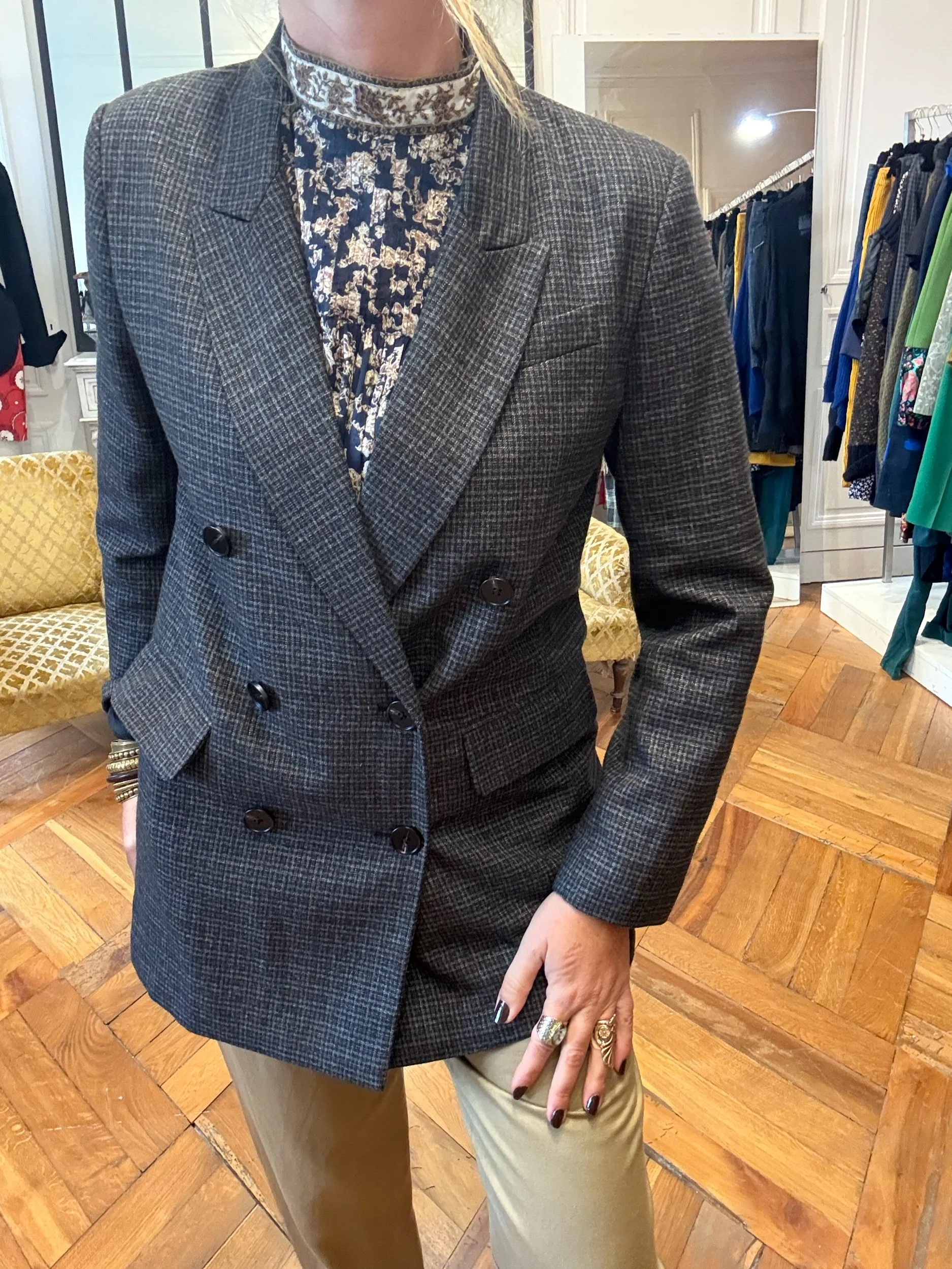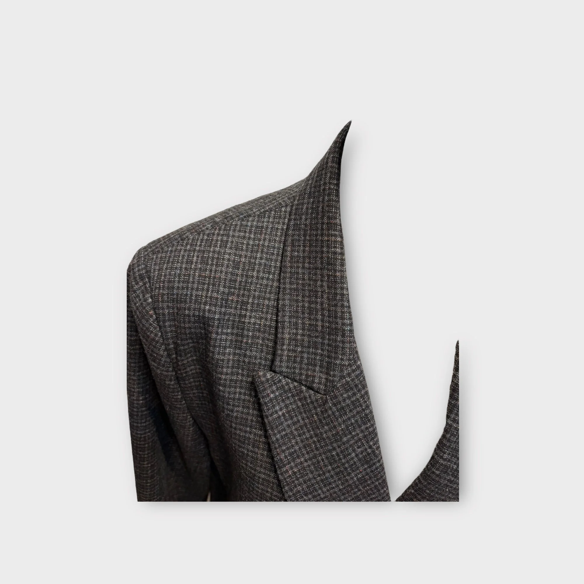 Veste de Blazer longue carreaux noir et gris avec fil rouge, bleu