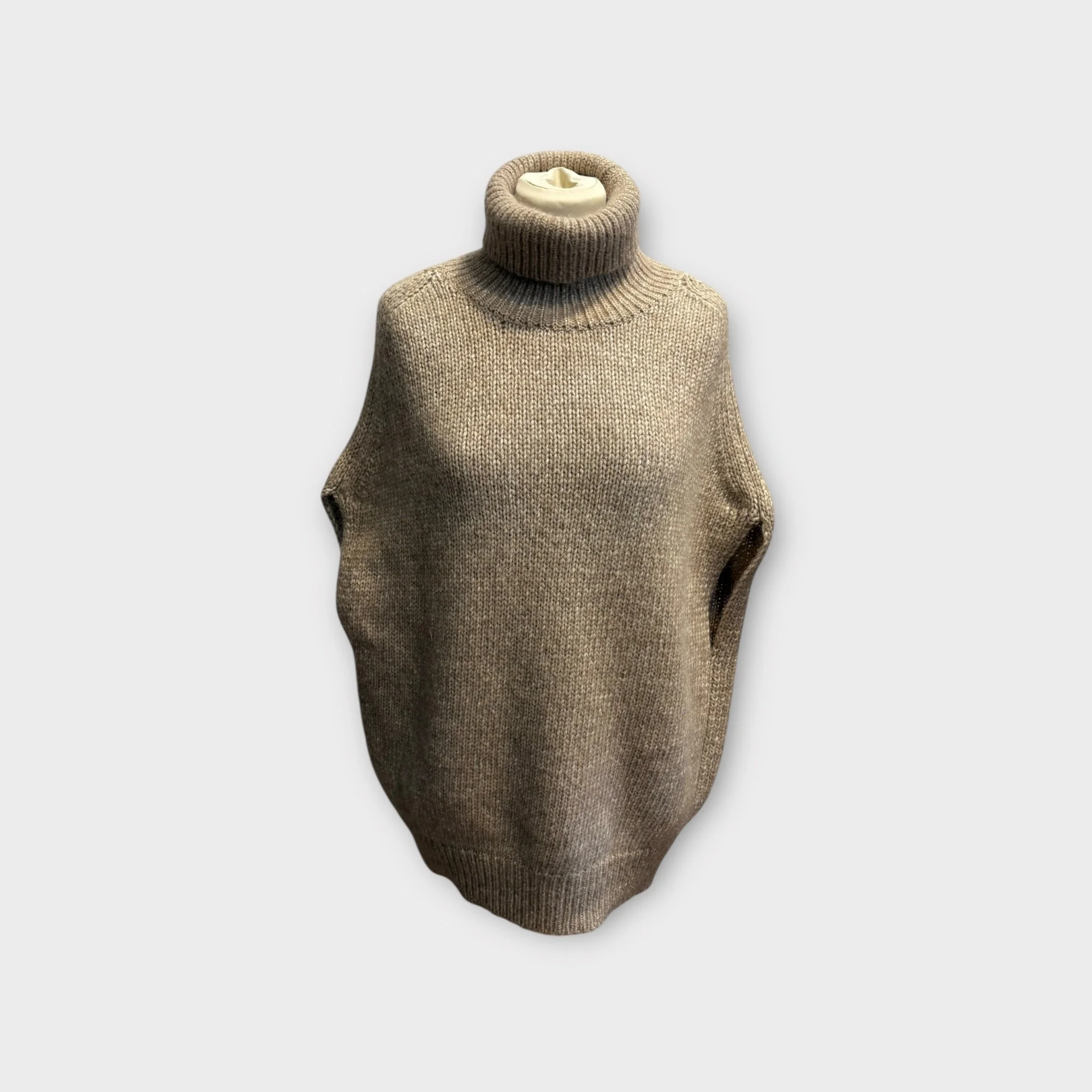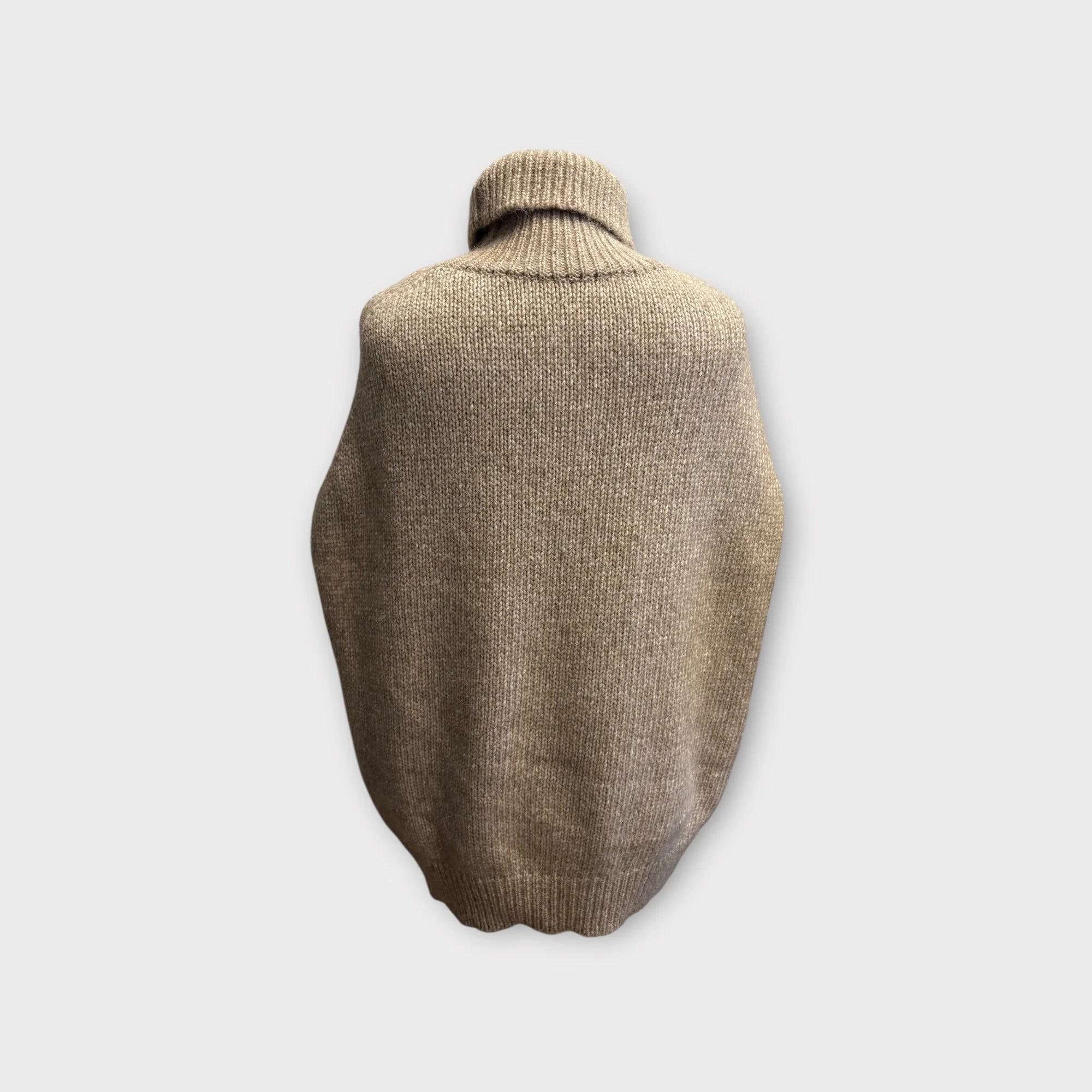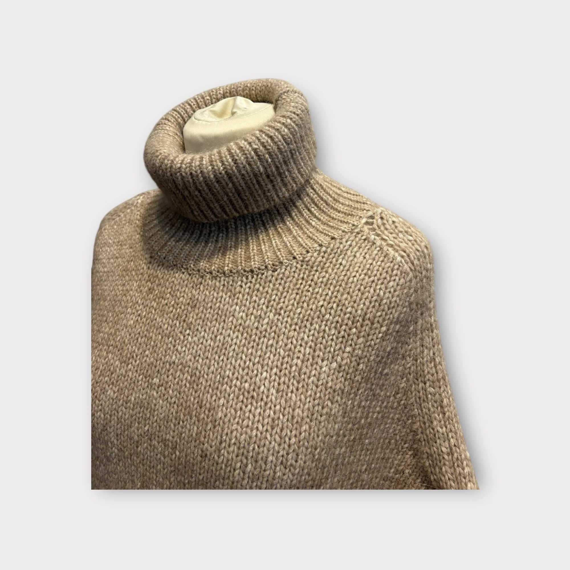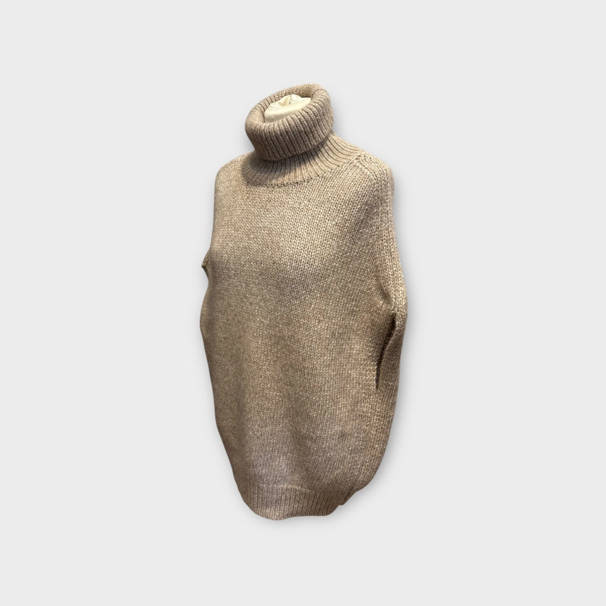 Pull col roulé sans manches en coton et alpaga beige chiné