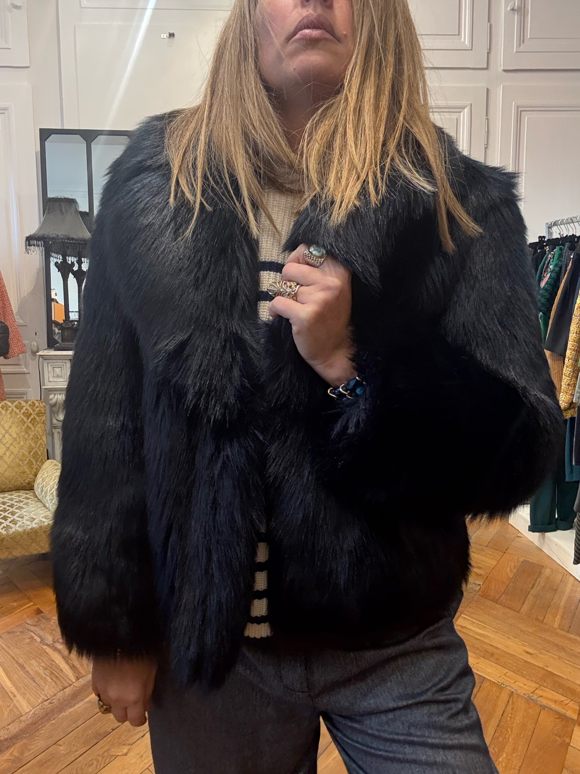 Le + selon ADM: La Veste en Fausse Fourrure marine et noir
