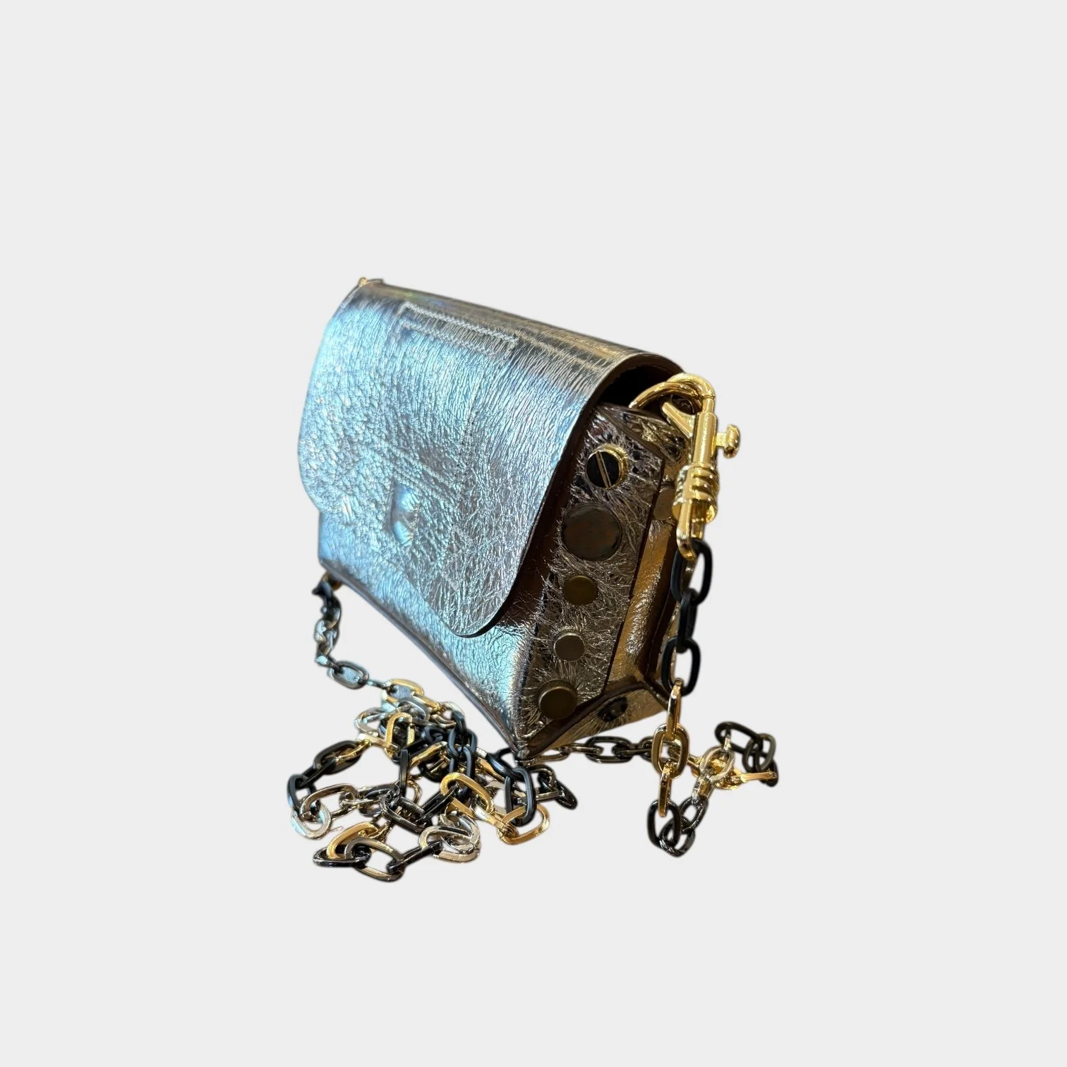 Sac en cuir recouvert d’une impression de métal argenté